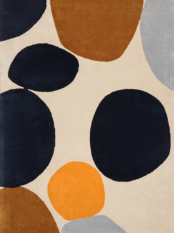 Rolling gemstones move and dance across the rectangular space of this rug, their bold stone formation creates a strong statement in any room. Earthy tones from mineral greys through to deep blues which are juxtaposed with warm browns and golden ambers that seem to vibrate within the landscape.