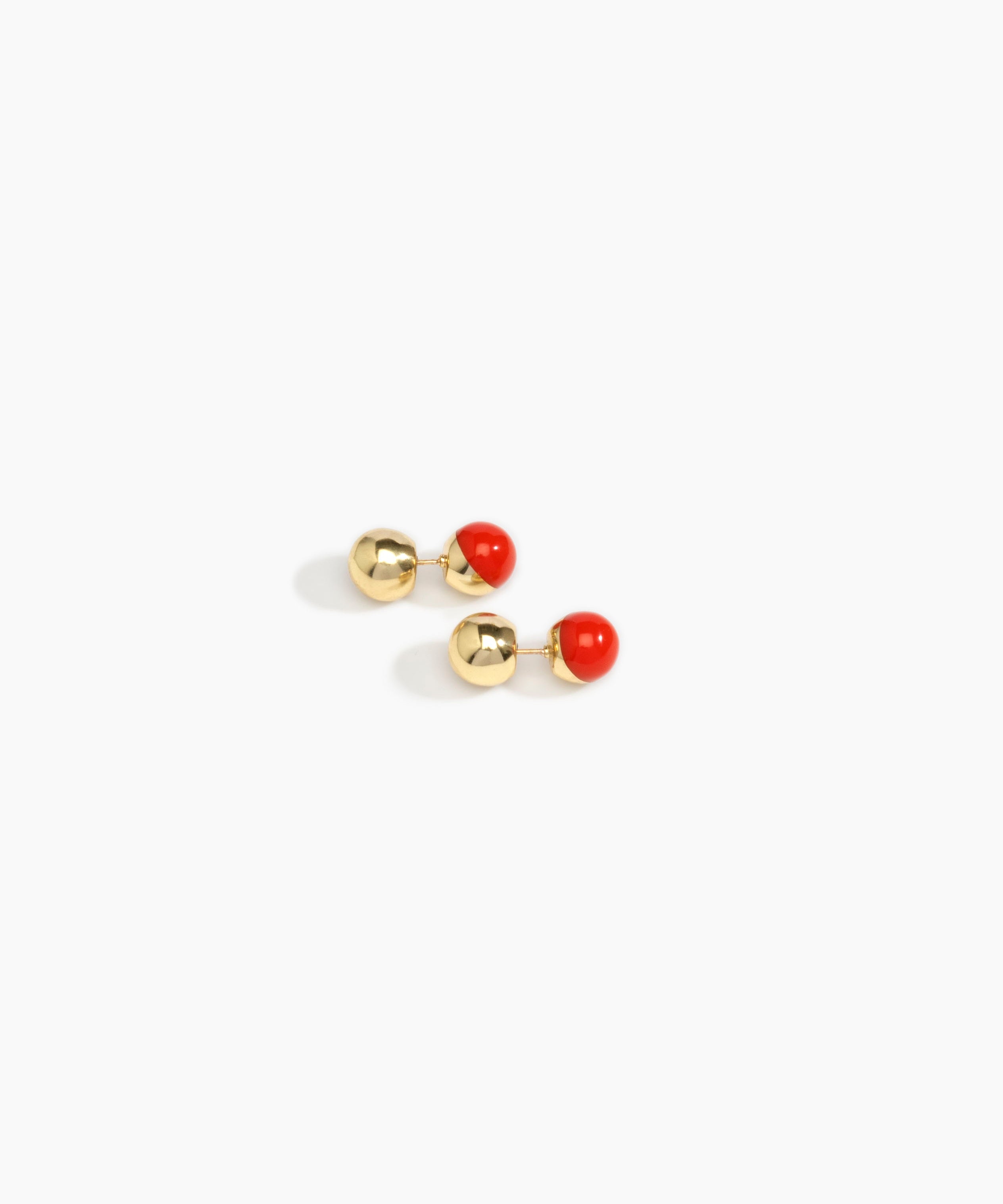 The Brass Ball Stud Earrings showcase the endless possibilities of resin, by fusing resin with nano-coated brass. The resulting composition is playful, giving the illusion of a floating brass ball either side of the lobe.
