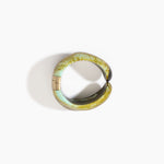The Bold Stone Cuff showcases the endless possibilities of resin, by fusing resin swirls with a functional metal hinge. The hinge ensures a comfortable and confident fit so that the cuff can firmly embrace the wrist.