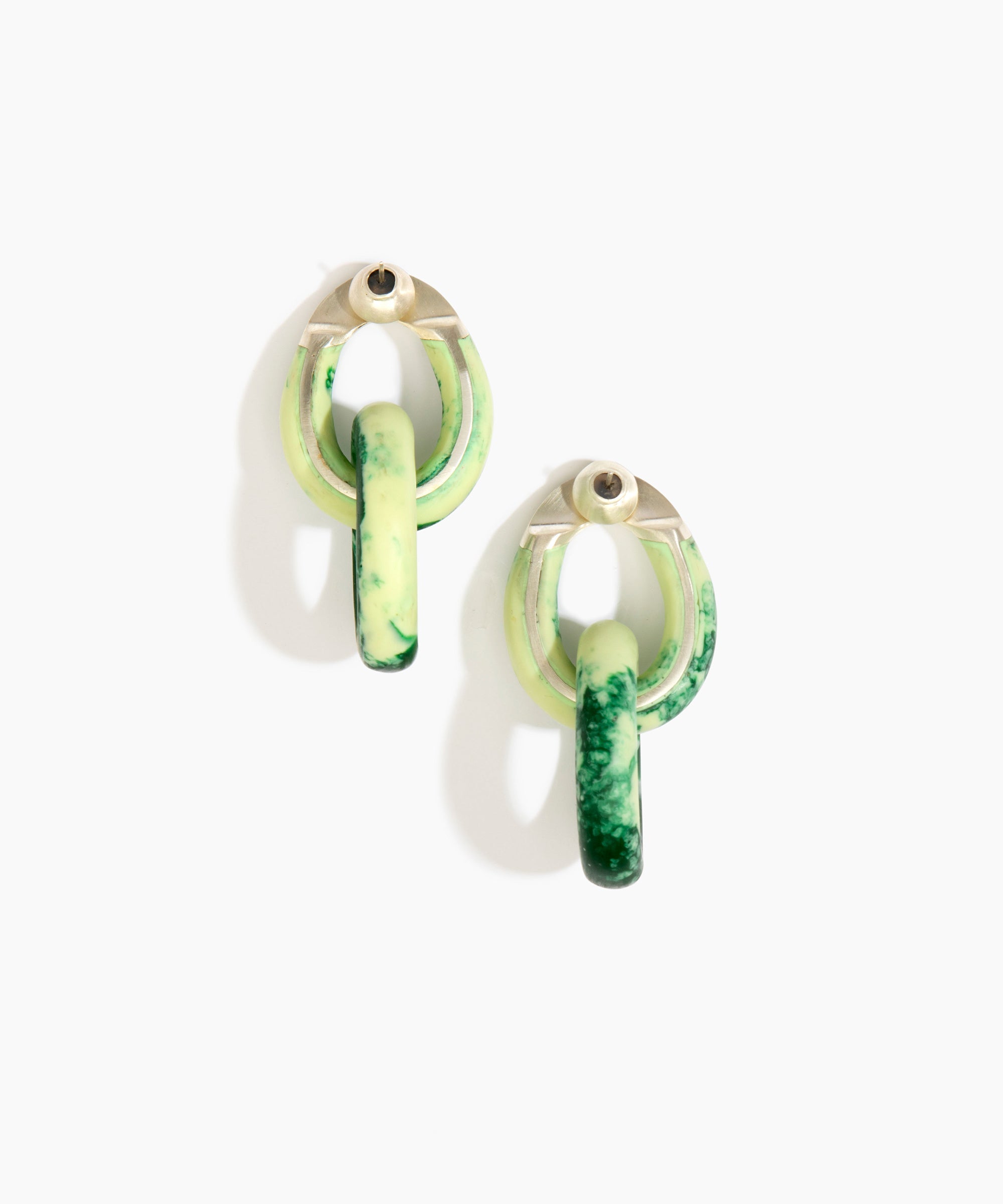 Referencing natural rock formations, the Resin Rock Chain Earrings playfully link small organic-shaped, ovoid loops. The small links of this style have gentle movement, adding an essence of vitality to every ensemble.