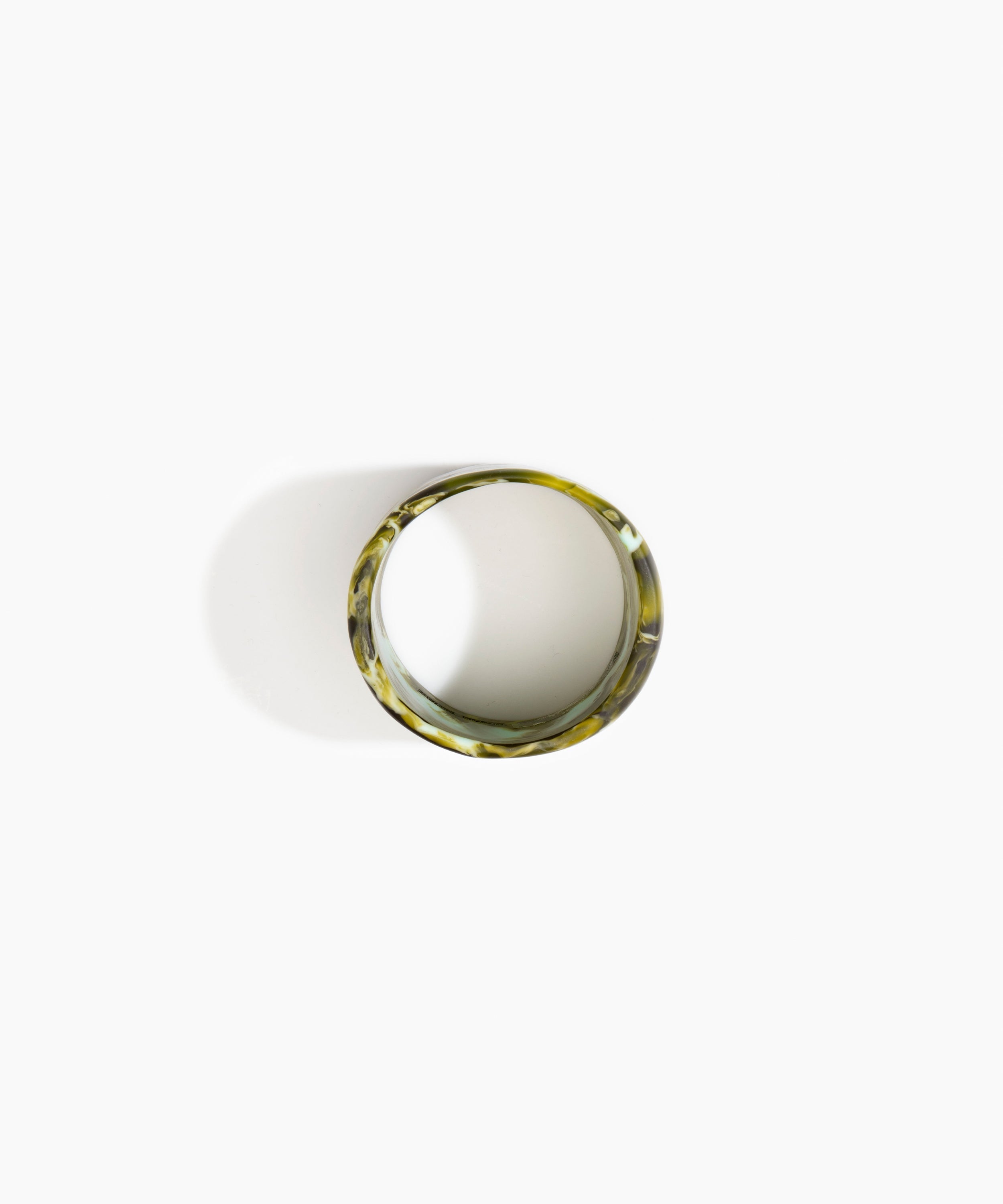 The Long Band Bangle is a wide cuff style that celebrates it's intricate resin swirls. Its classic design makes a bold statement, while remaining as timeless addition in all wardrobes.
