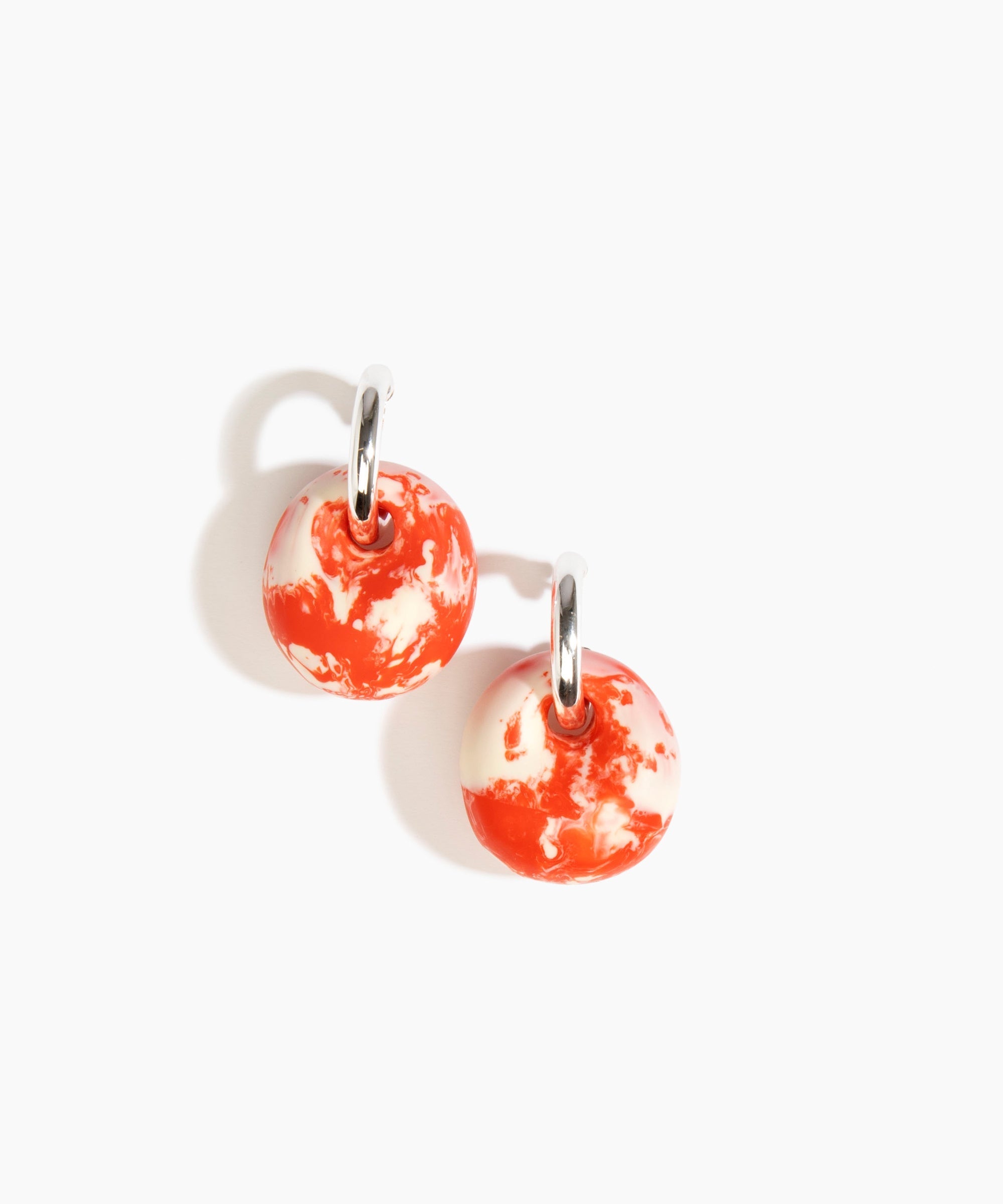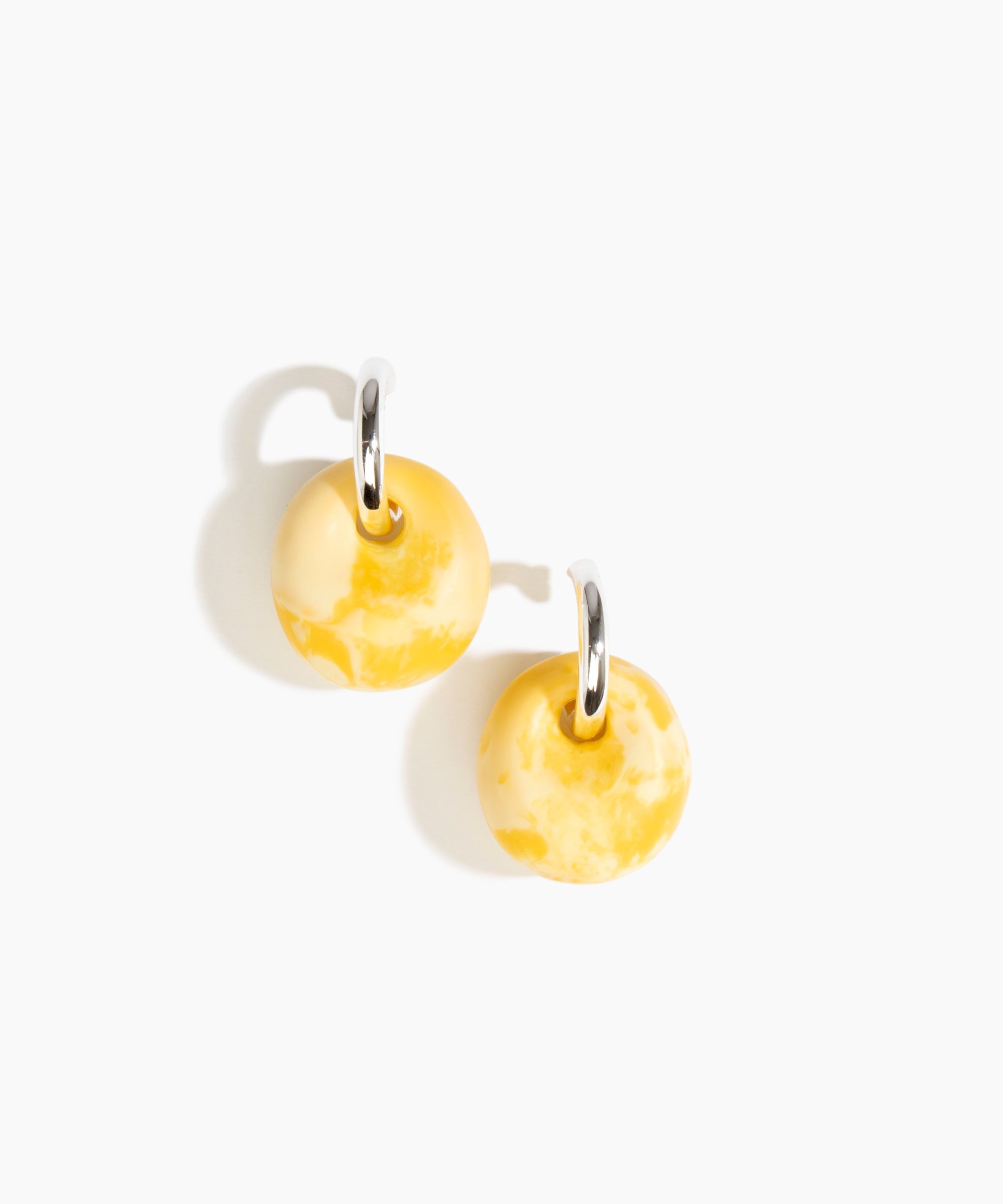 The Medium Splash Hoop Earrings are a style with endless variation. Crafted from silver-plated brass and adorned with smooth, round resin beads, there are many possibilities for personalisation. This style allows the wearer to alternate colours of the charm or simply remove for a classic hoop.