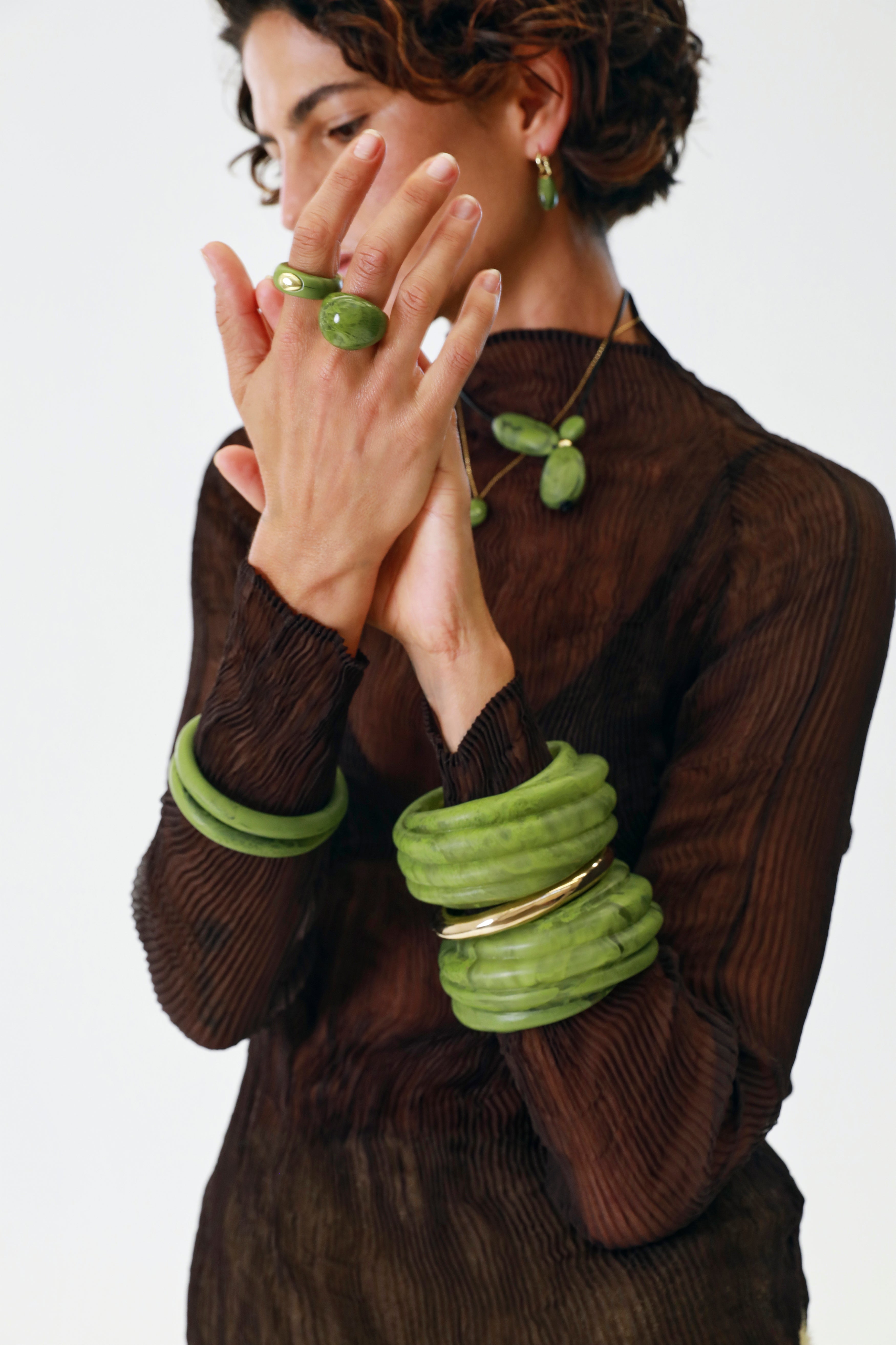 Dinosaur Designs Large Horn Ring in Malachite Colour resin with Nano-Coated Brass Material