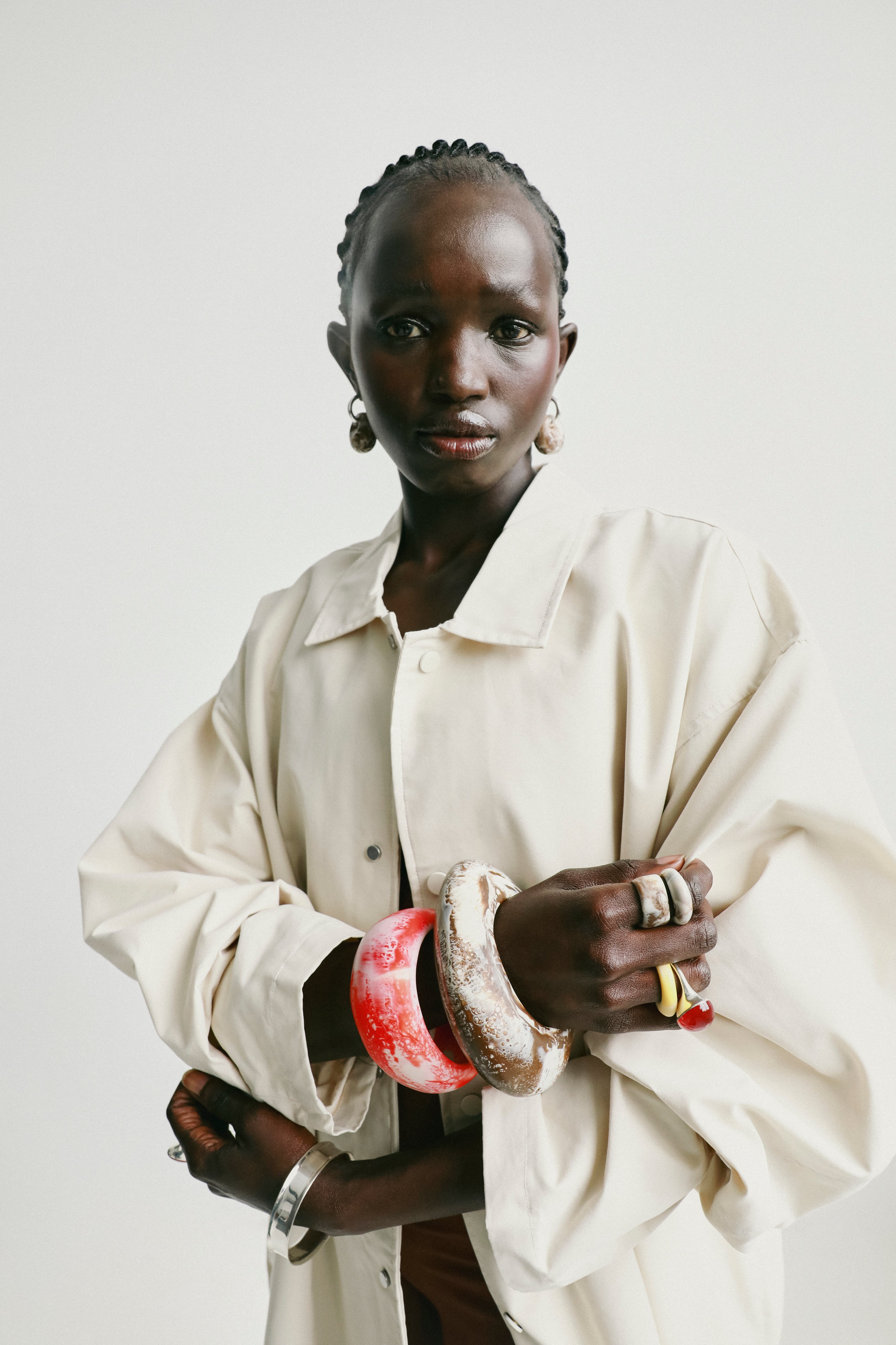 The Organic Oval Bangle traces an organic, ovoid shape that mimics nature’s curves. Its contoured shape embraces the wrist for ease of wear and ensures a comfortable fit. Its wide profile enhances its versatility whether worn alone for a minimalist look or layered for a more adorned style. The large of this style is generous, creating a statement when worn singularly or stacked.