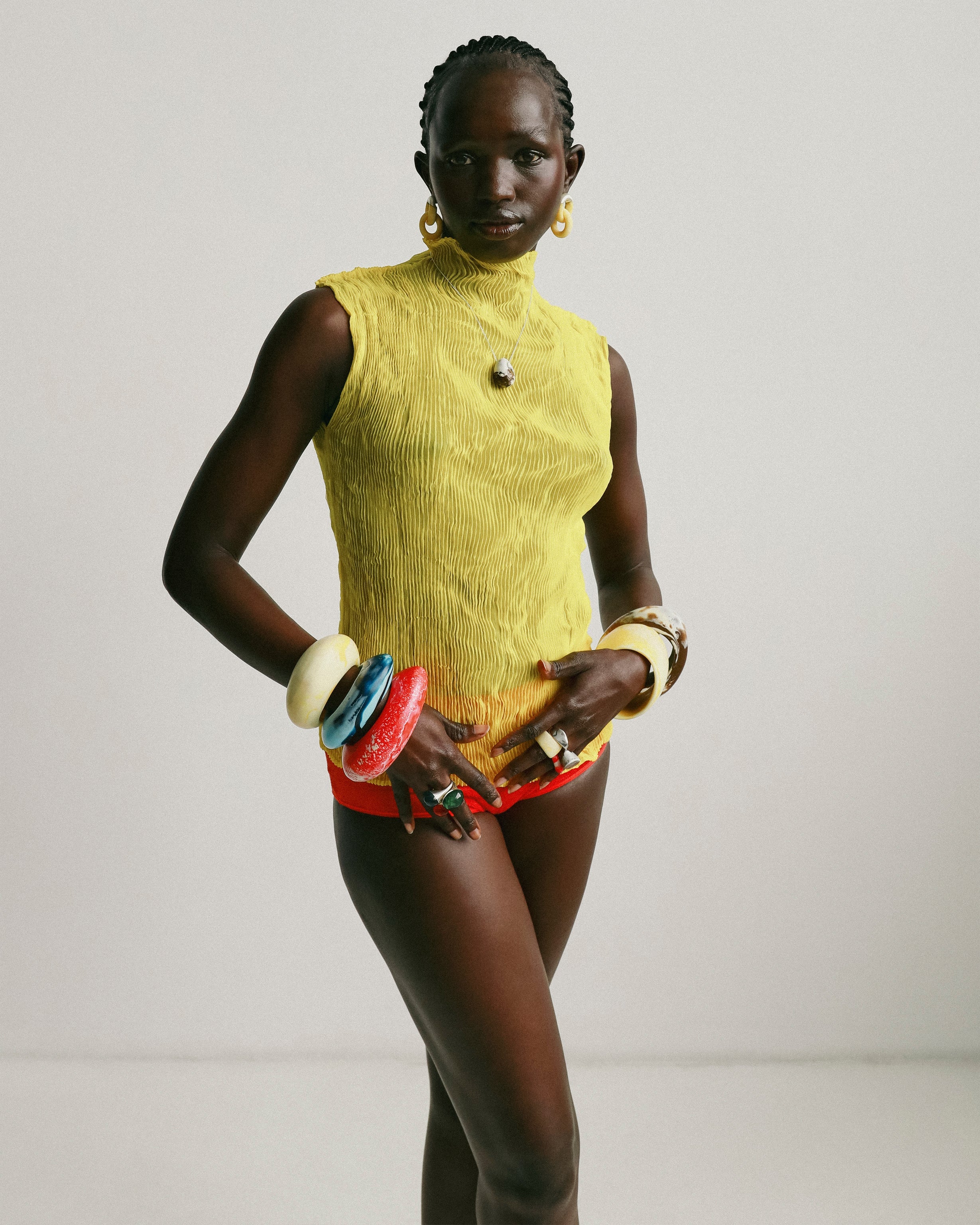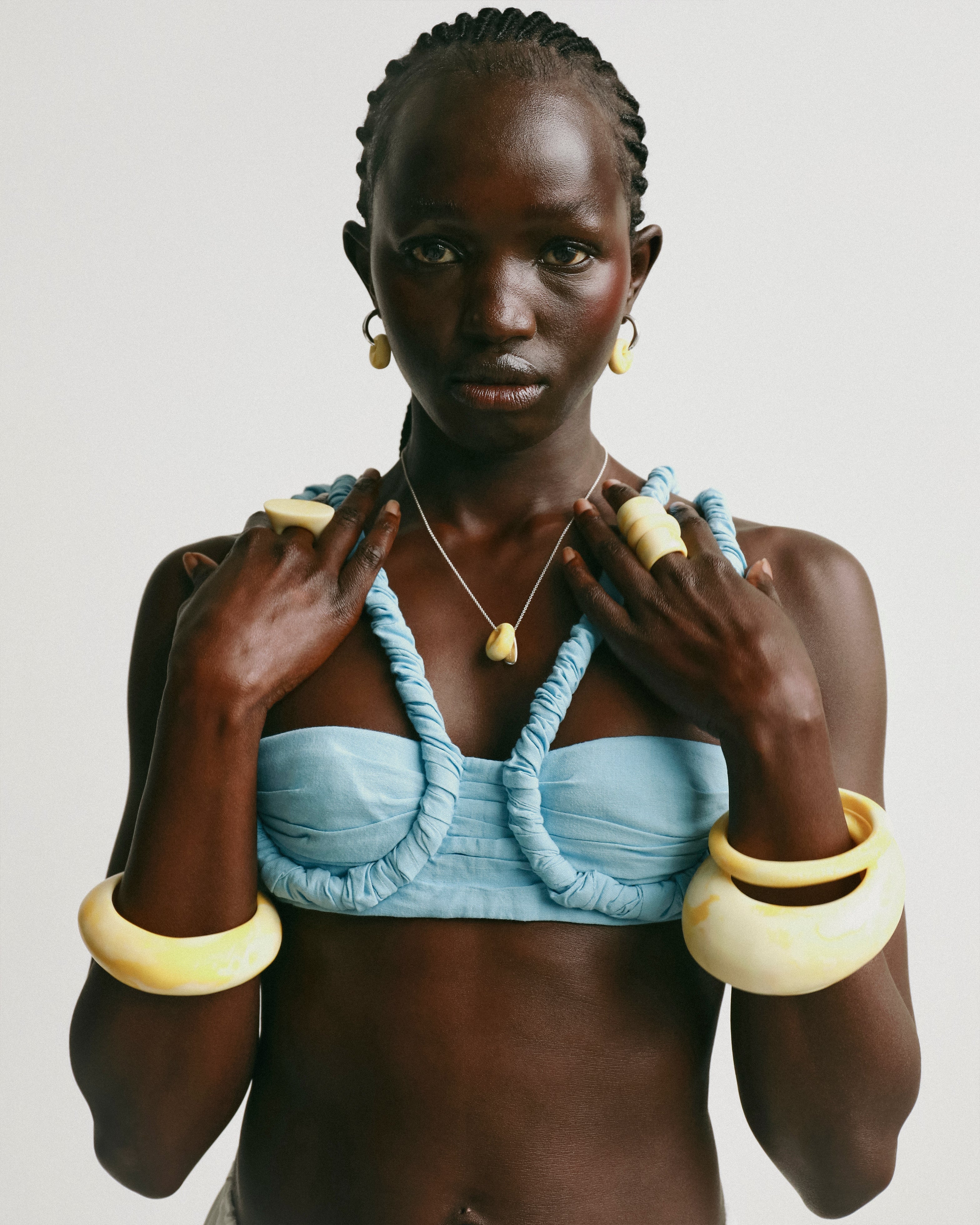 Drawing inspiration from natural rock formations, the Resin Rock Bangle beautifully follows an organic, ovoid form. This style hugs the wrist, and its oval silhouette is intensified when layered.