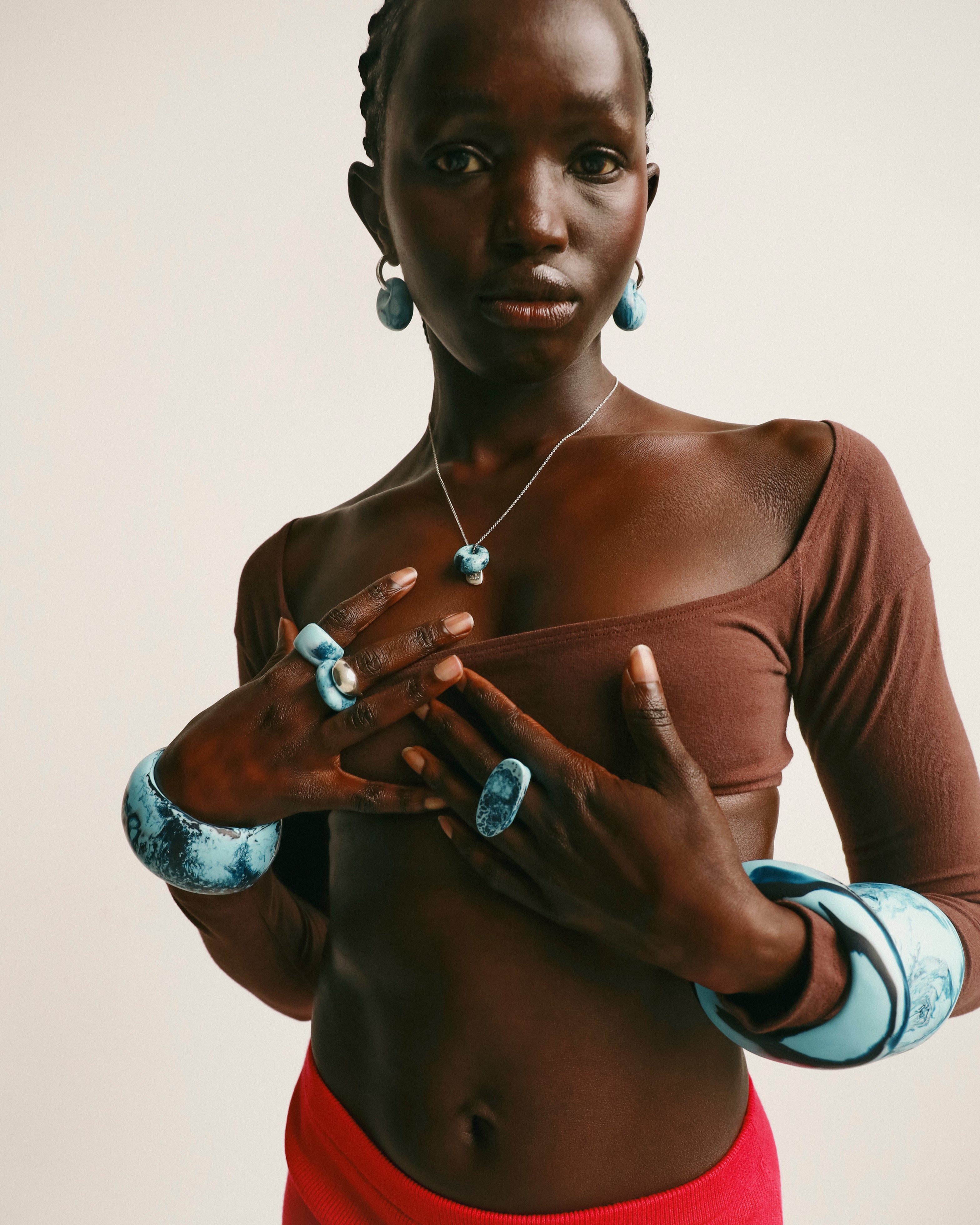 Resin is strong and durable but should be treated as a ceramic. Just like ceramic it can break if dropped or knocked against a hard surface. Dinosaur Designs is not responsible for breakages that result from pieces being dropped or knocked or that are damaged due to general wear and tear. To restore sheen to your jewellery, simply apply moisturiser. To keep your polished resin jewellery in great condition, wipe with a clean, dry cloth.