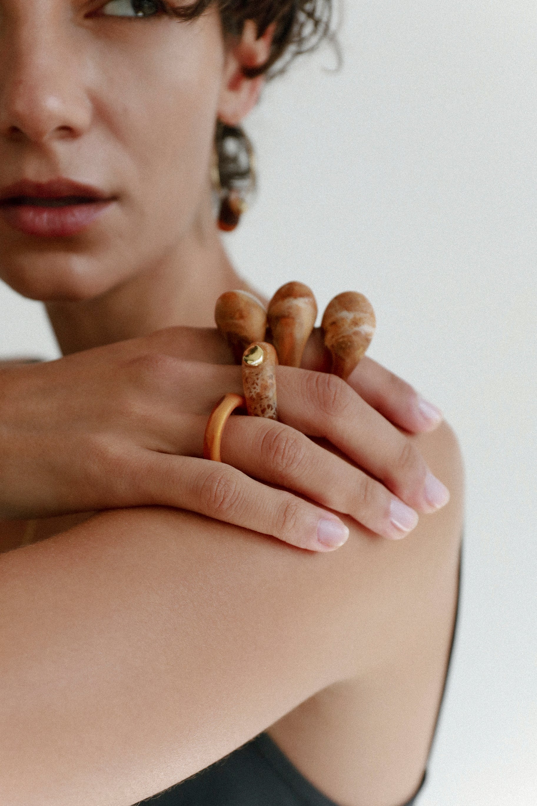 The Pebble Ring captures the natural essence of a pebble through its smooth, organic shape.