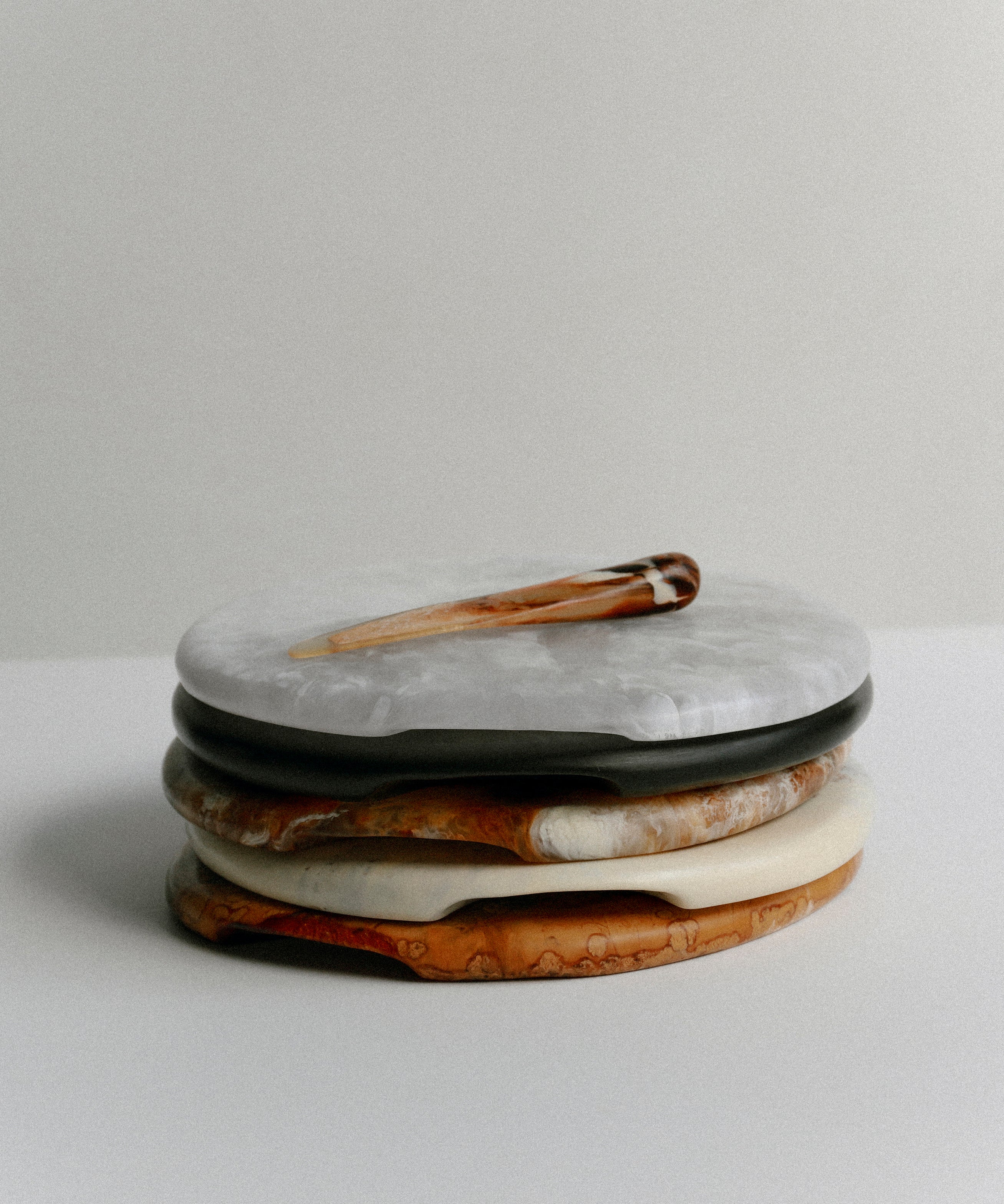 Our homewares are suitable for cold food only. These pieces should be hand washed in warm water. Resin may appear frosted after washing and should be rubbed with a drop of cooking oil to restore sheen. All resin pieces are strong and durable but should be treated like a ceramic and are not shock-absorbent and can break if dropped or knocked against a hard surface. Resin is not fire resistant and so should not be used in an oven, a microwave, or used as candleholders or ashtrays.