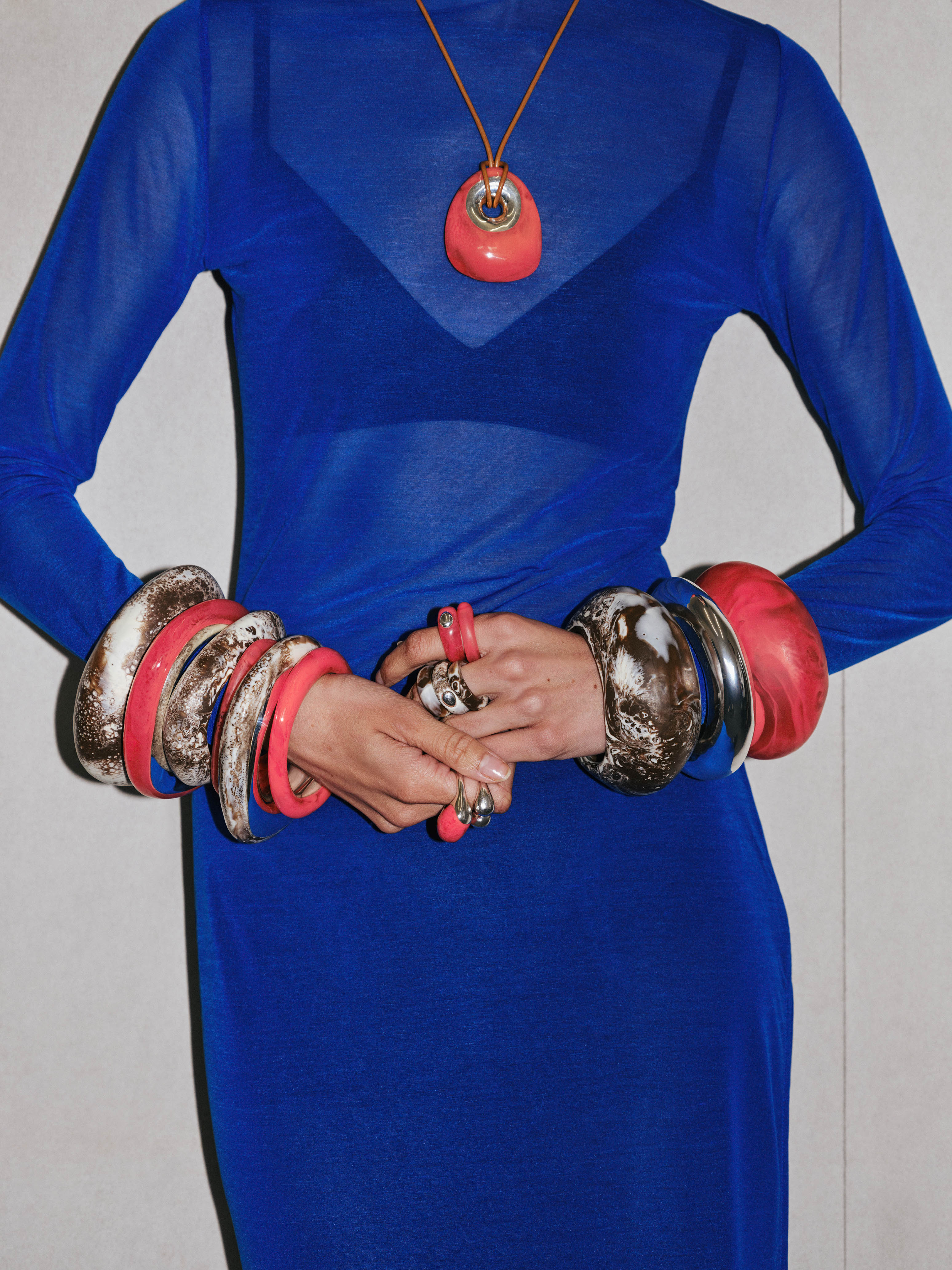 A cornerstone of the Dinosaur Design offering, our handmade resin bangles and bracelets are crafted in organic forms in narrow to daring proportions, each exuding modernity and individuality.