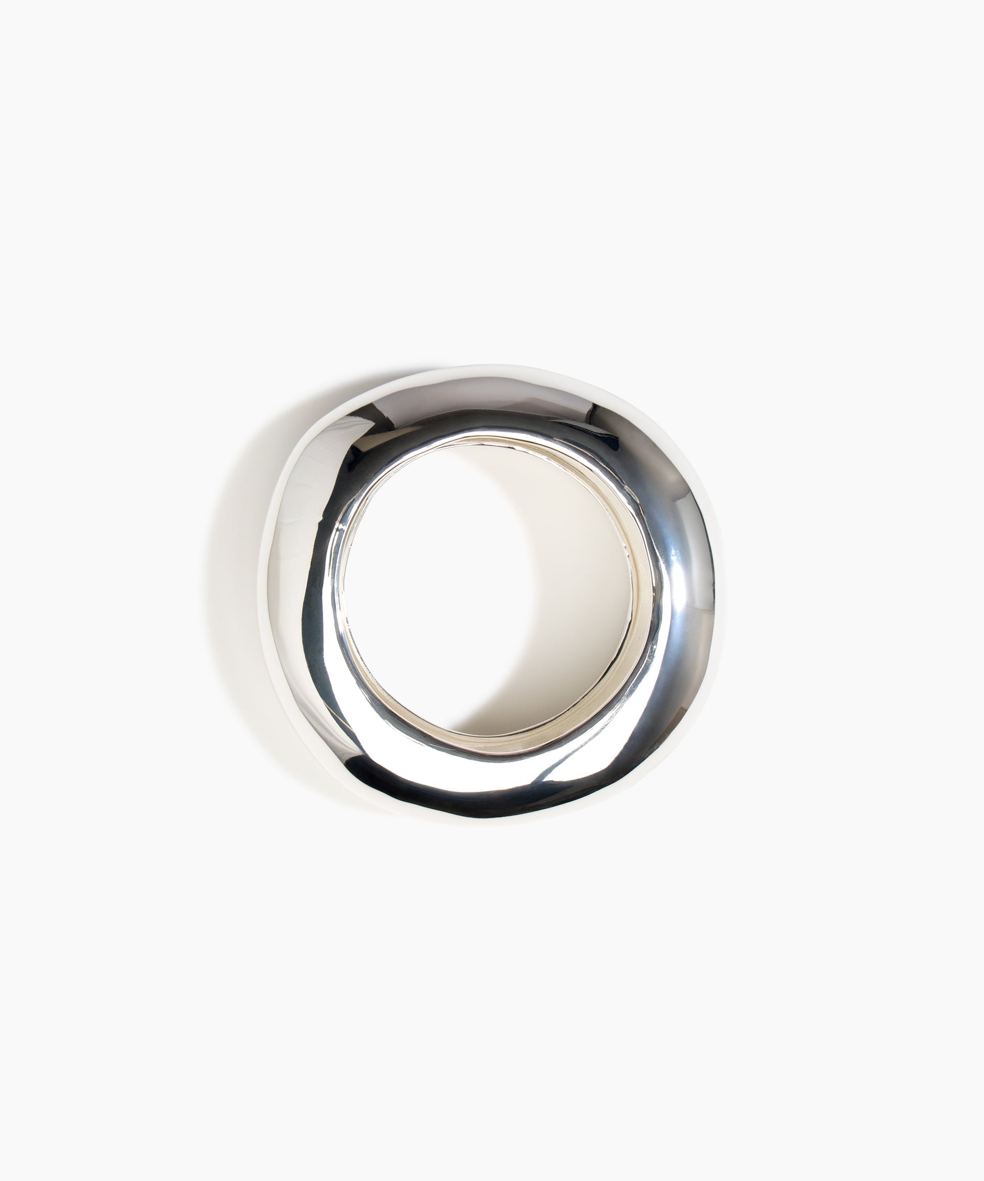 The metal Drift Bangles are characterised by their smooth, organic silver forms. The large style showcases its generous profile and subtle curves, creating a smooth reflective finish. Pair together with other Drift resin, duo and metal styles for dramatic effect.