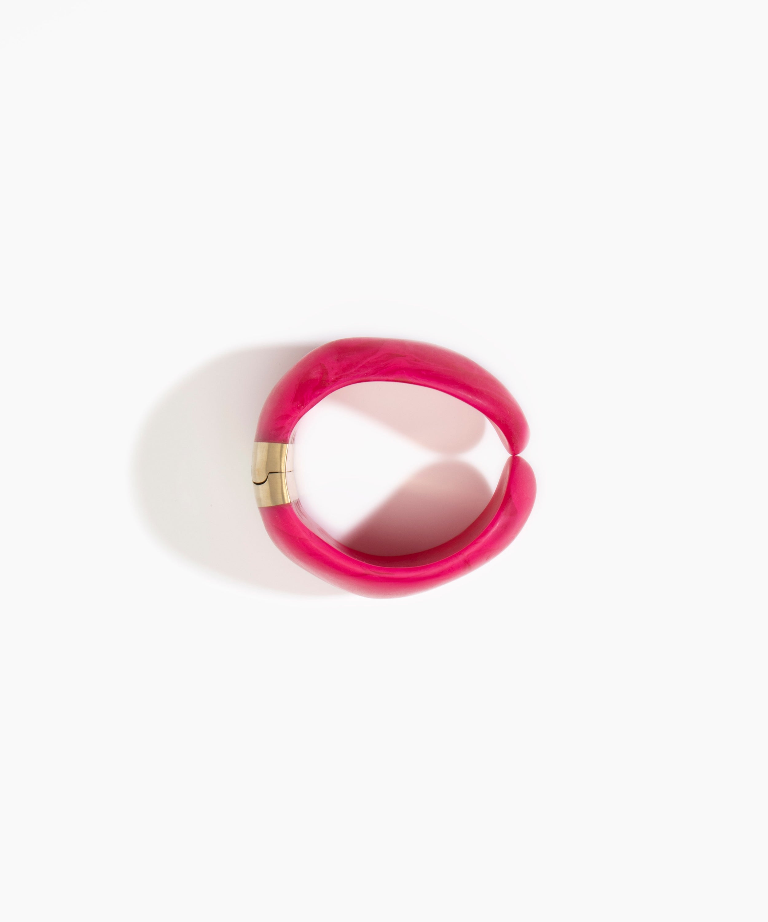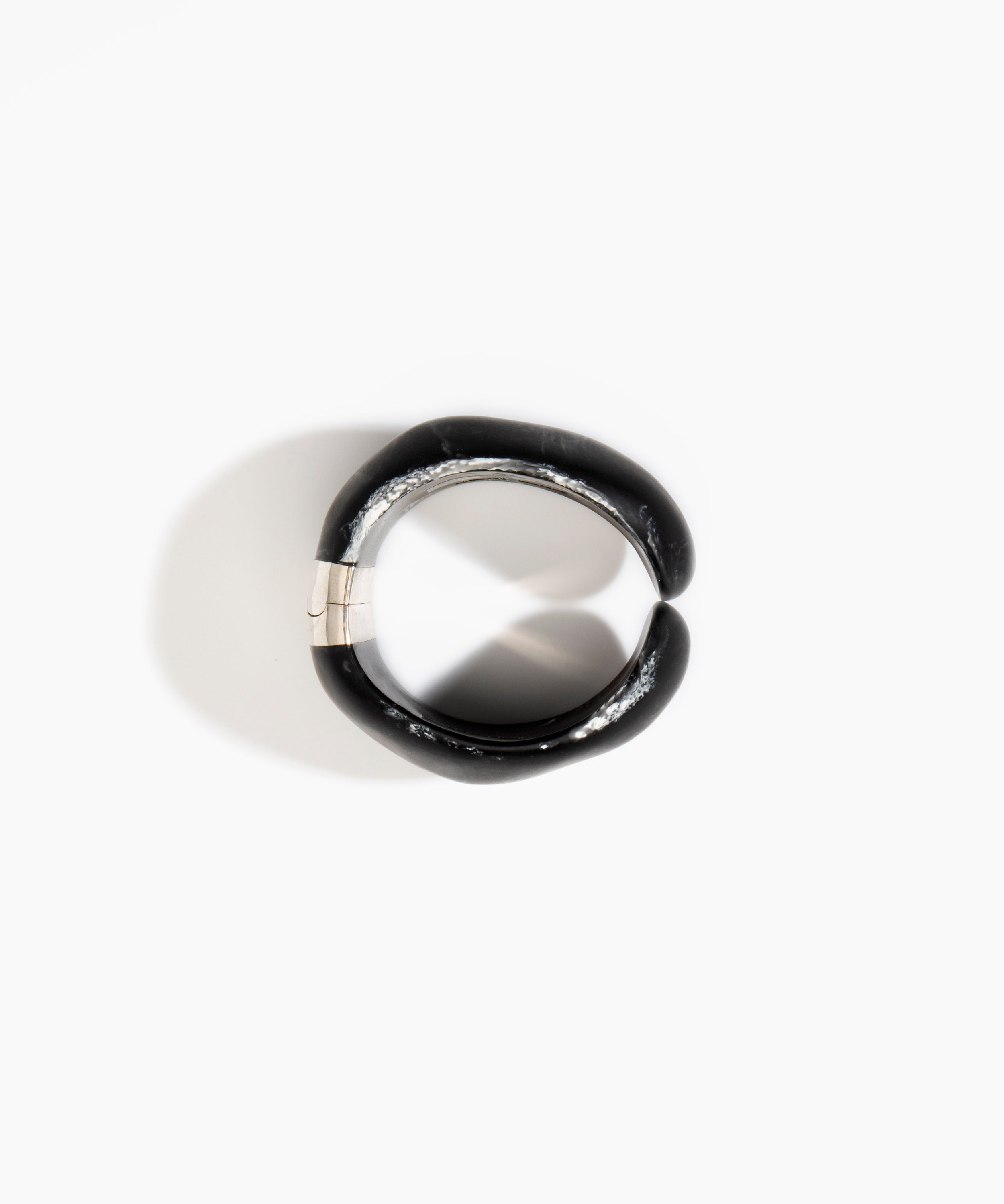 The Bold Stone Cuff showcases the endless possibilities of resin, by fusing resin swirls with a functional metal hinge. The hinge ensures a comfortable and confident fit so that the cuff can firmly embrace the wrist.