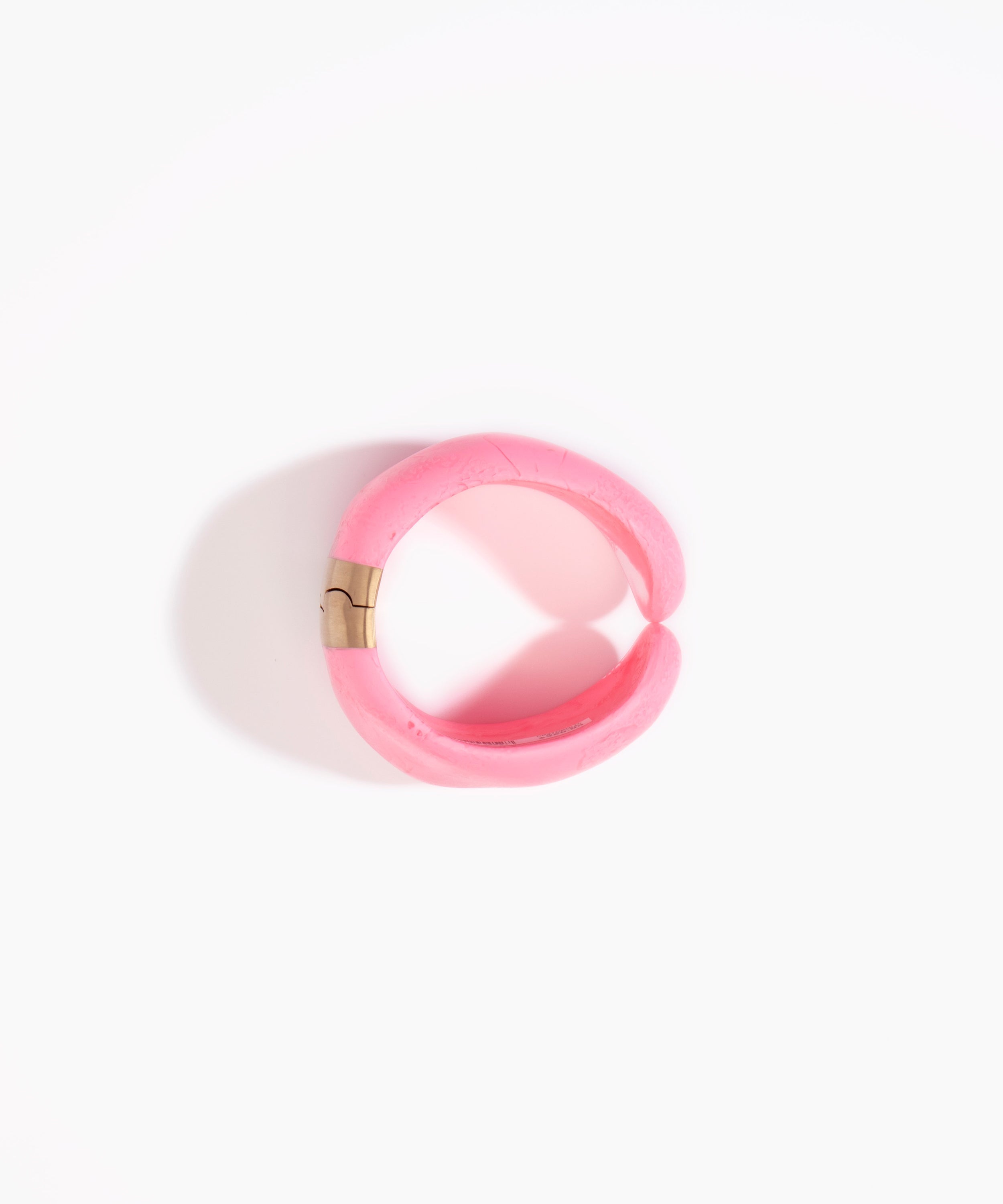 Resin is strong and durable but should be treated as a ceramic. Just like ceramic it can break if dropped or knocked against a hard surface. Some of our resin bangles use a metal hinge. While this hinge is strong and durable, it can sprain if over extended and lose some of its tension. Dinosaur Designs is not responsible for breakages that result from pieces being dropped or knocked or that are damaged due to general wear and tear.