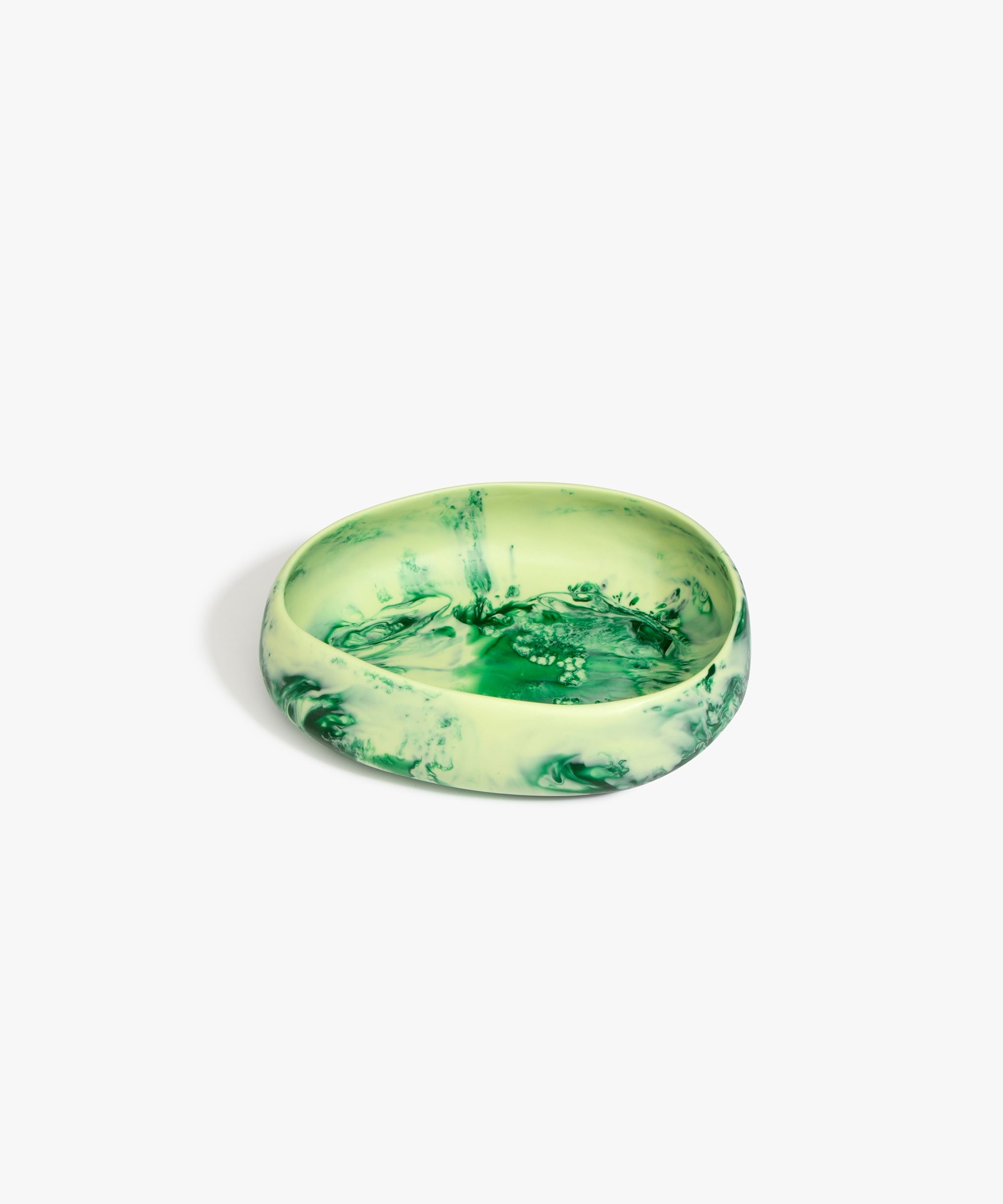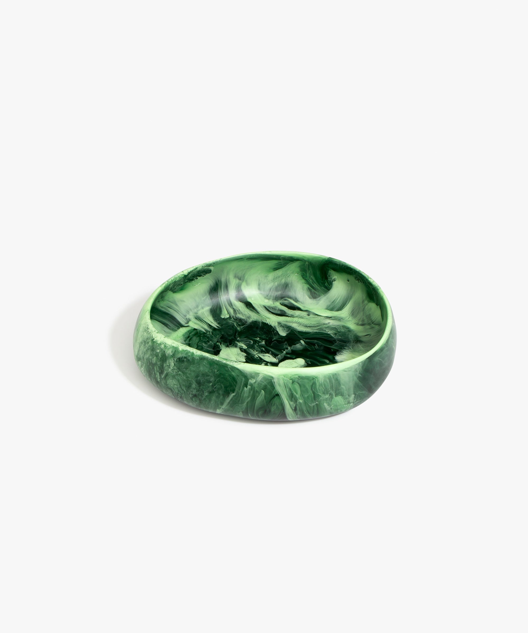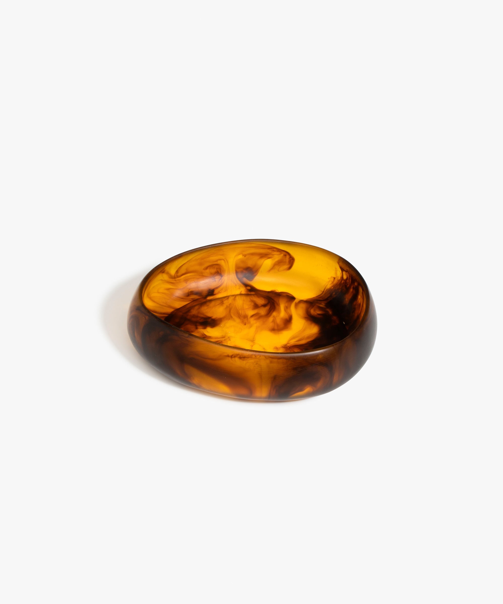 Our homewares are suitable for cold food only. These pieces should be hand washed in warm water. Resin may appear frosted after washing and should be rubbed with a drop of cooking oil to restore sheen. All resin pieces are strong and durable but should be treated like a ceramic and are not shock-absorbent and can break if dropped or knocked against a hard surface. Resin is not fire resistant and so should not be used in an oven, a microwave, or used as candleholders or ashtrays.