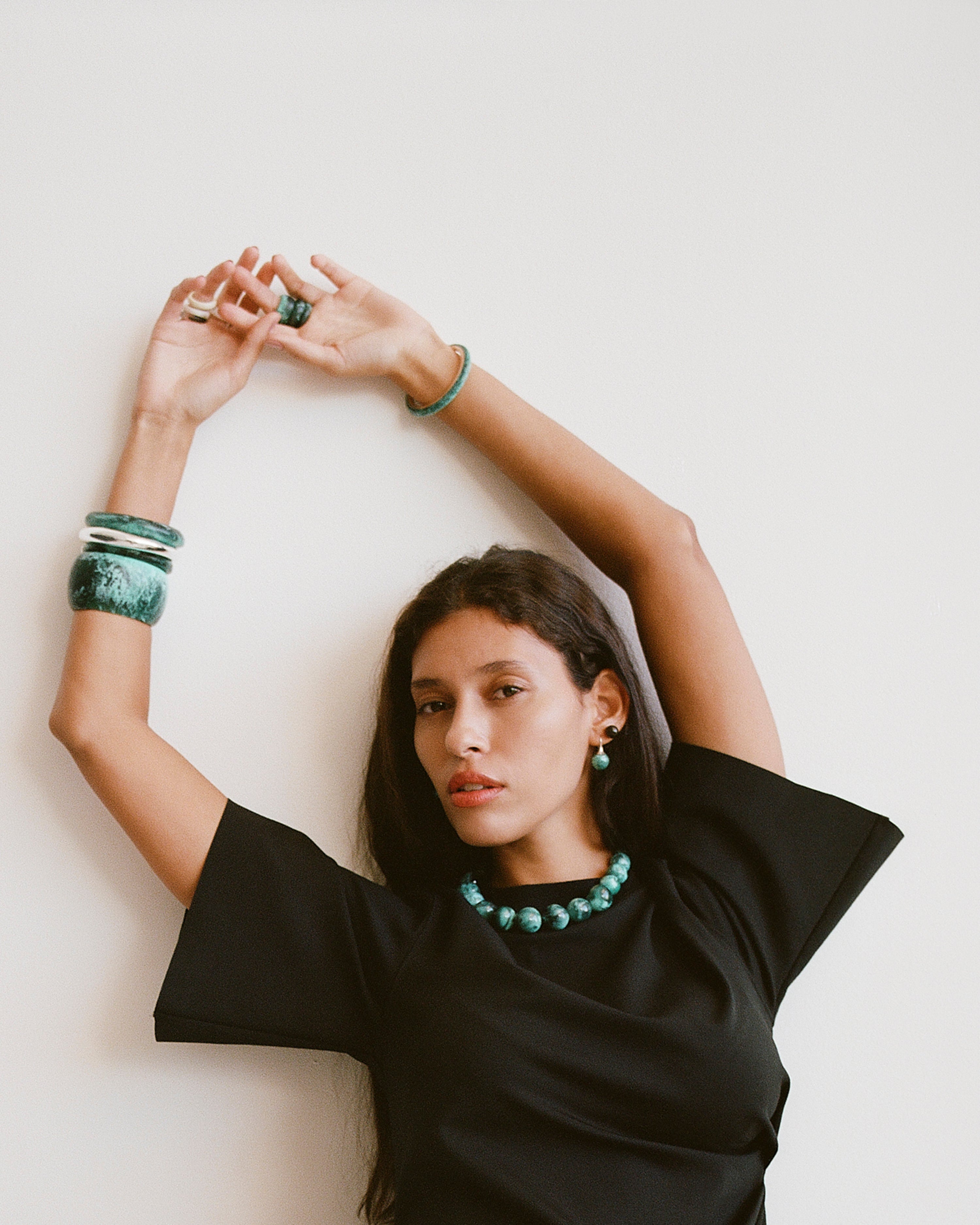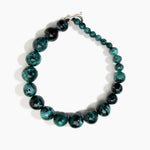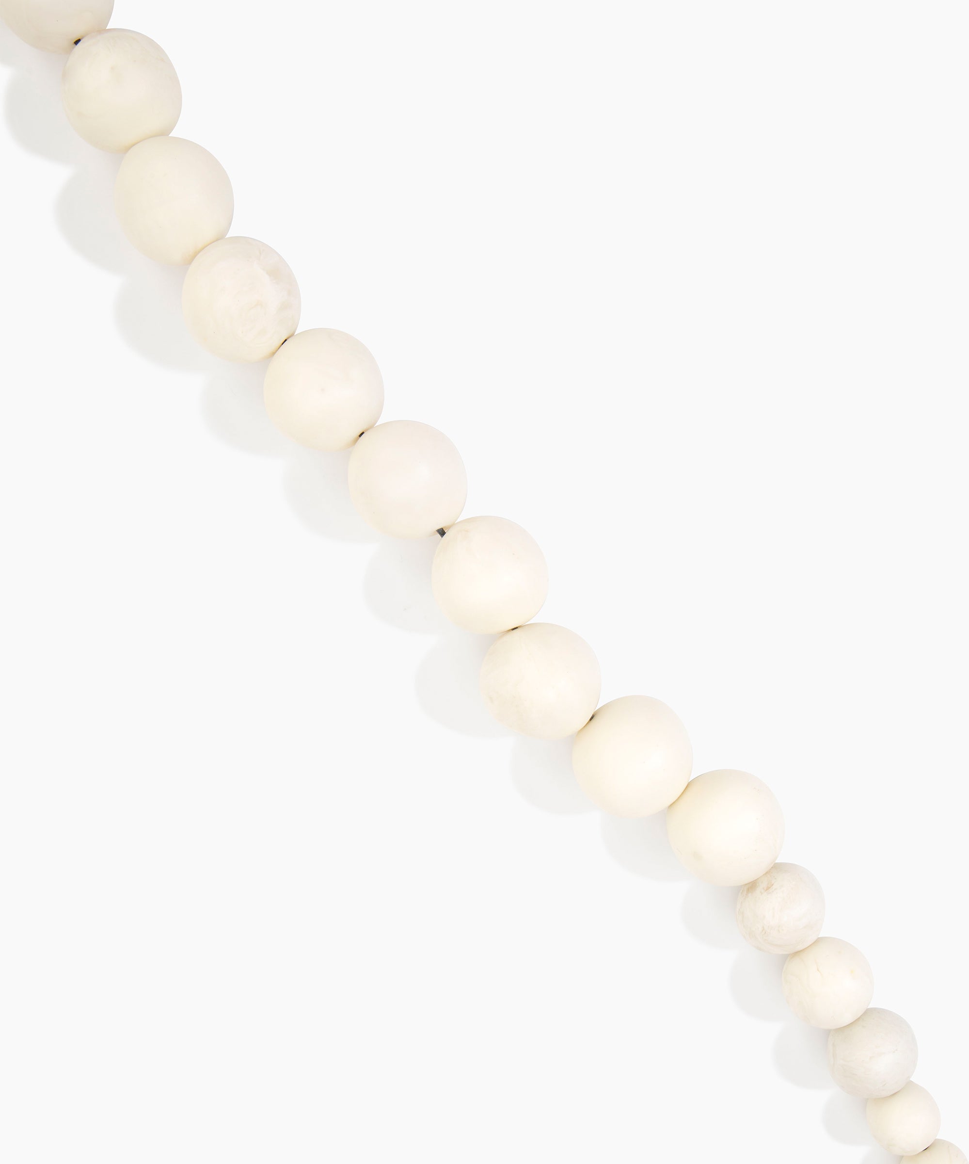 The Organic Ball Choker is strung with hand-finished resin beads, graduating from small to large for a dynamic effect. Each bead reflects the handmade nature of the choker, with natural spherical formations finished to a matte or polished finishes. The choker sits comfortably at the collarbone and is secured with a metal toggle-style clasp detail for confident wear.