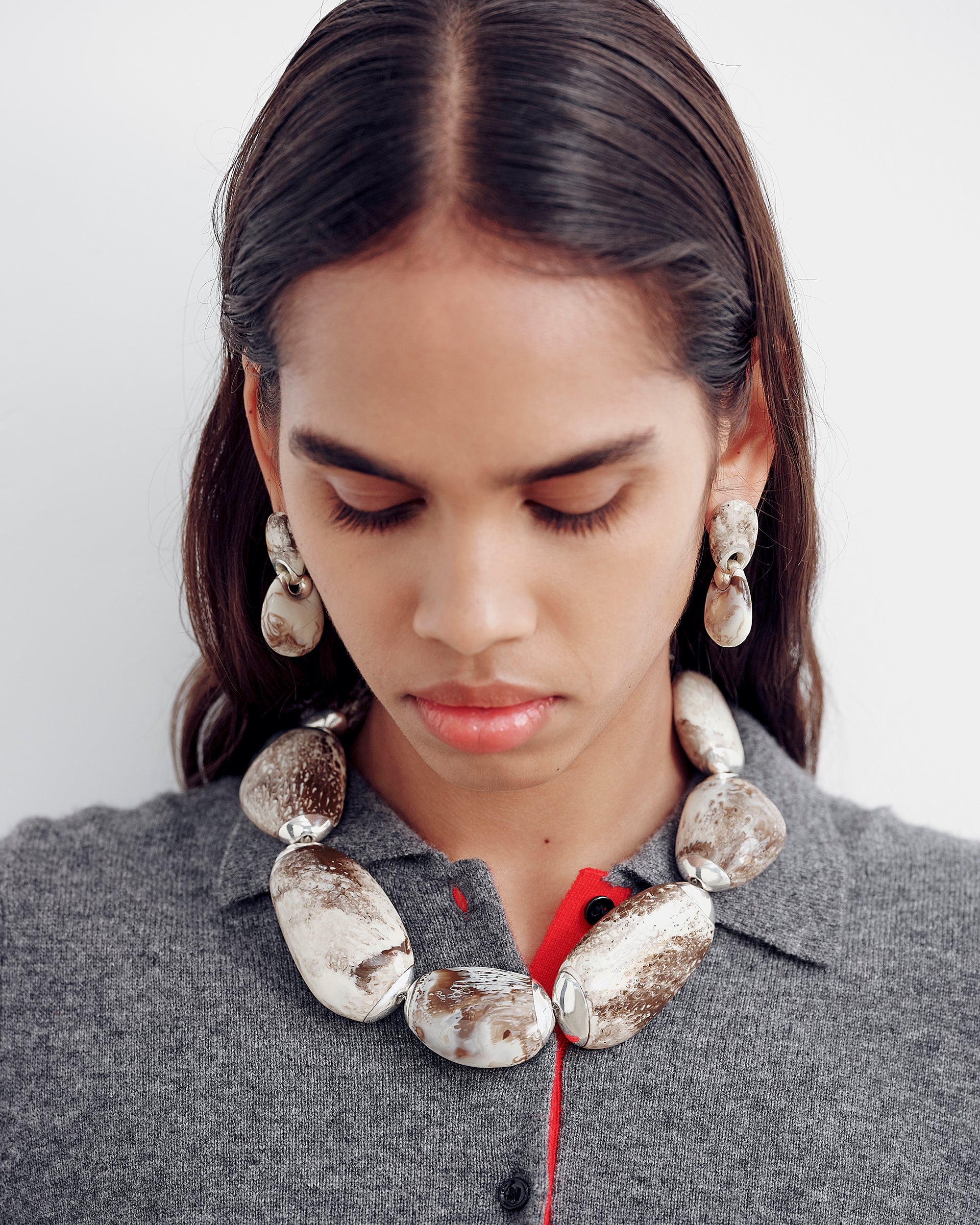Our earring collection features handmade resin and metal earrings, combining richly-coloured resin with metal hardware.