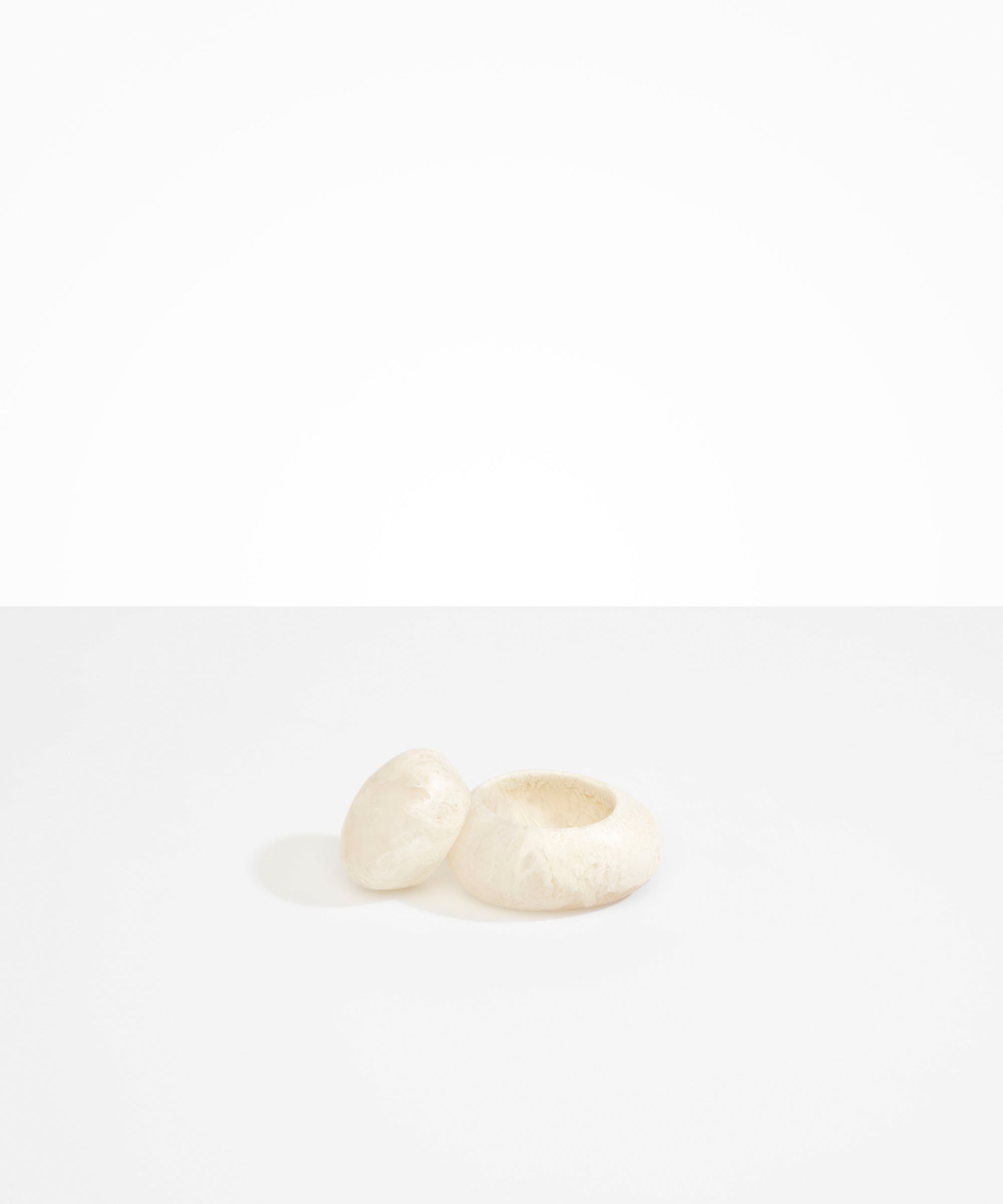 The Medium Pebble Jar is a new and playful addition, resembling a pair of stacked pebbles. It is a natural complement to our Boulder Pepper Grinder and a charming receptacle for holding sea salt flakes. The lid serves as an additional vessel when inverted, offering versatility. To complete the ensemble, accompany it with one of our beautifully crafted teaspoons.