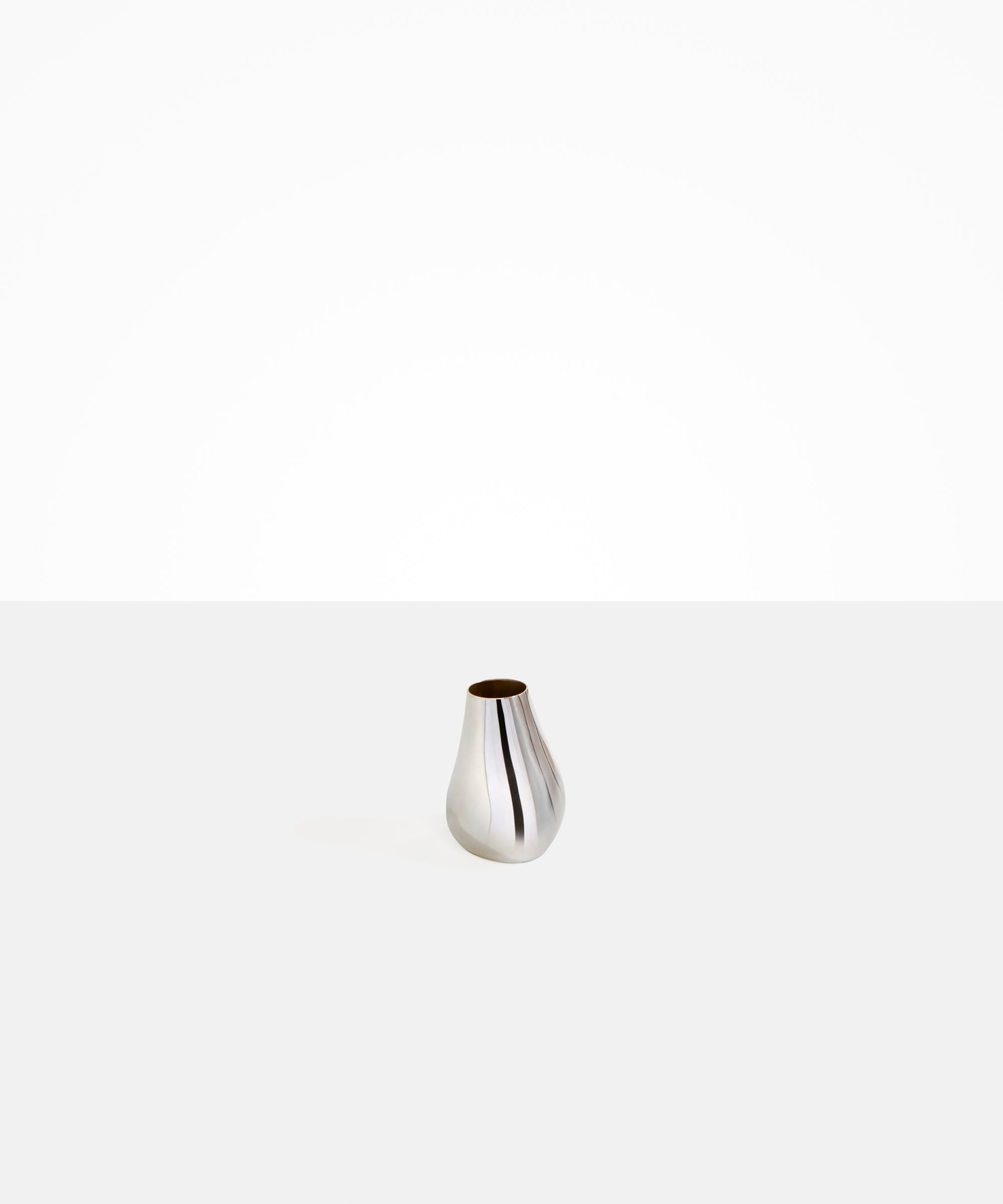 Reinterpreting foundational shapes in metallic finishes, Dinosaur Designs renders the Small Liquid Vase in brass and silver-plated brass, adding metallic interest to the home.