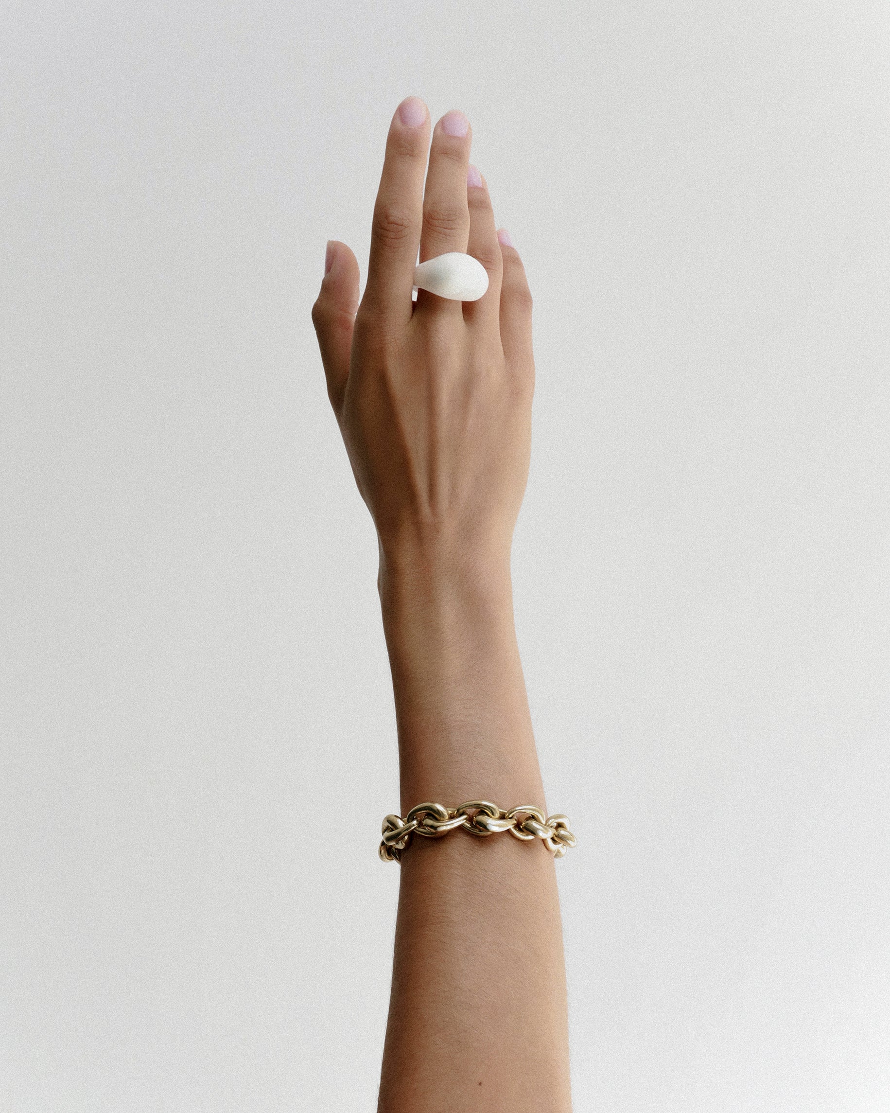 The Hug Chain Bracelet by Louise Olsen harmoniously merges classic and contemporary aesthetics, securing with ease through a magnetic snap closure. Available in Nano-Coated Brass, and Silver-Plated Brass.
