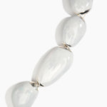 Referencing smooth, geological forms, the Rock Chain Choker skilfully threads large, varied resin beads onto a silver chain, creating a statement necklace style that sits at the collar. Each of resin bead is cast into silver ends, framing the marbled resin for a strong visual effect.