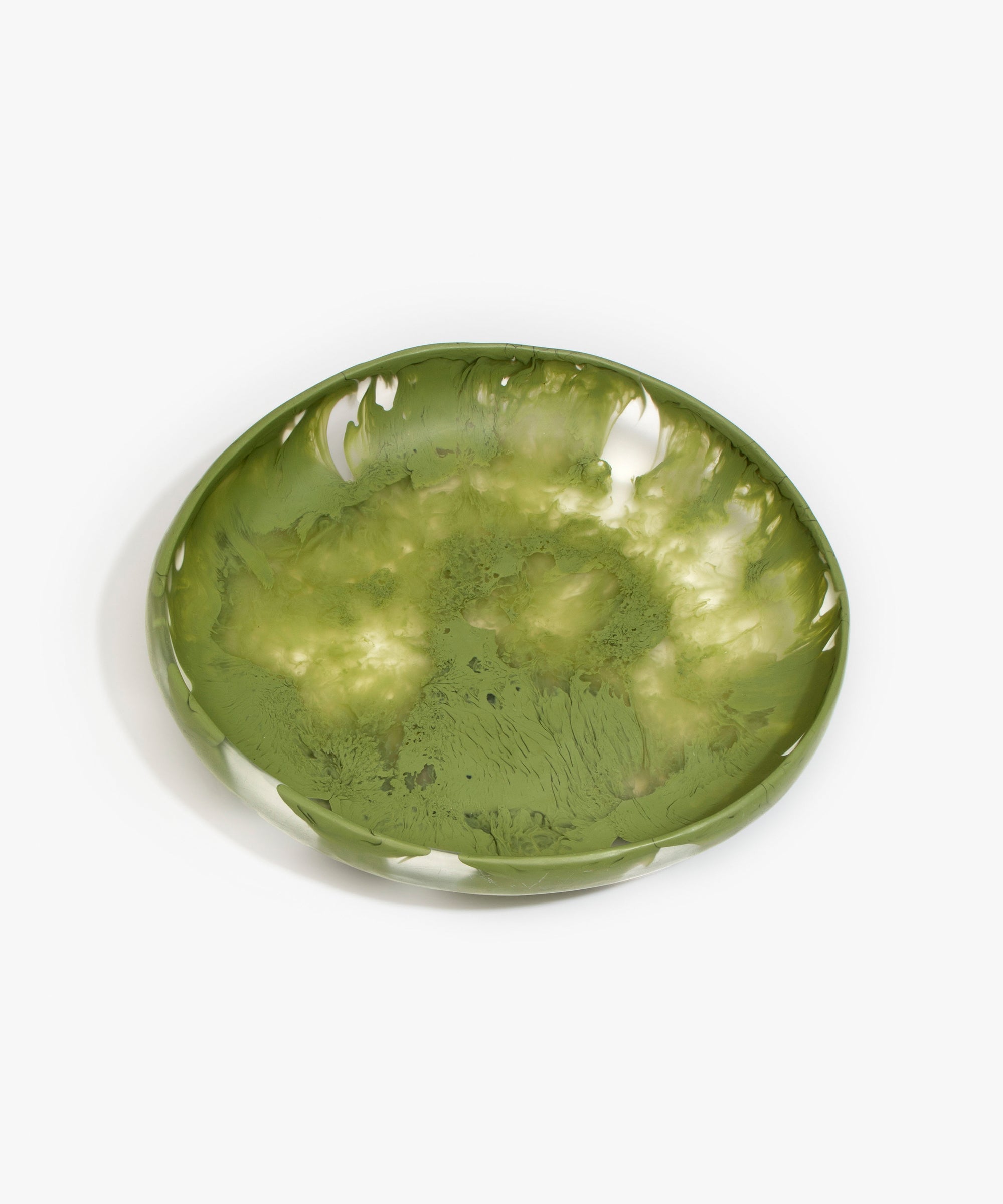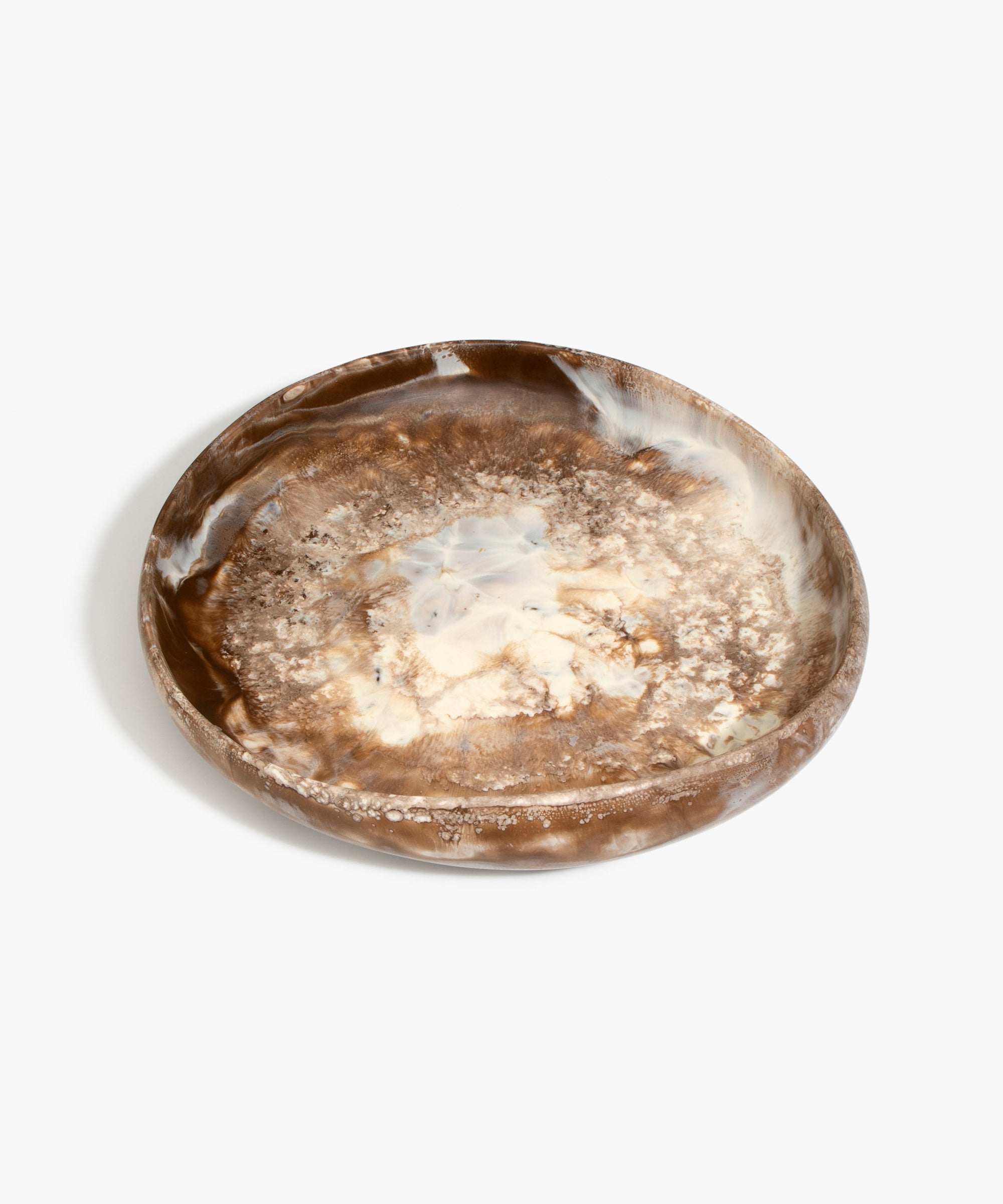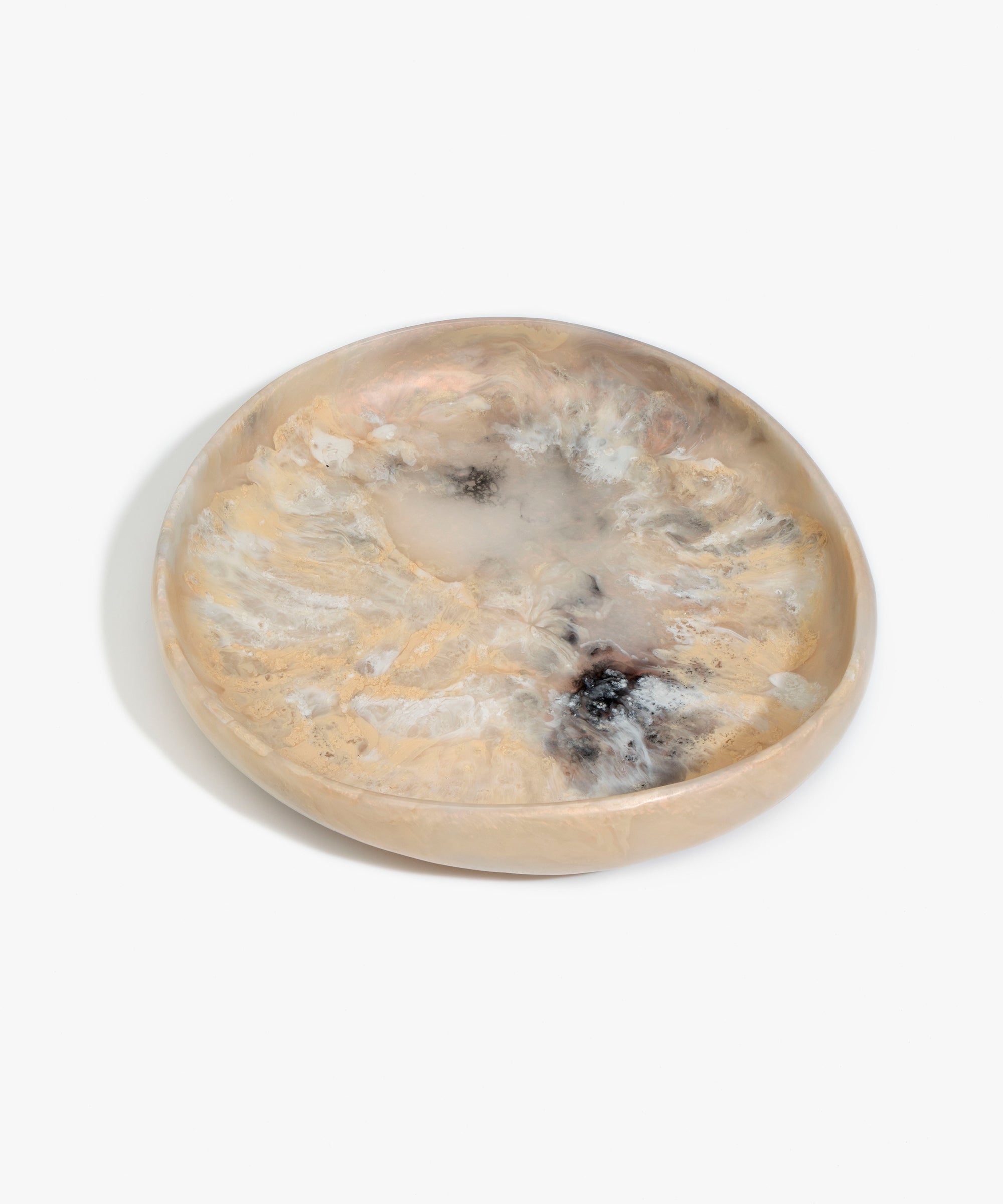 Our homewares are suitable for cold food only. These pieces should be hand washed in warm water. Resin may appear frosted after washing and should be rubbed with a drop of cooking oil to restore sheen. All resin pieces are strong and durable but should be treated like a ceramic and are not shock-absorbent and can break if dropped or knocked against a hard surface. Resin is not fire resistant and so should not be used in an oven, a microwave, or used as candleholders or ashtrays.