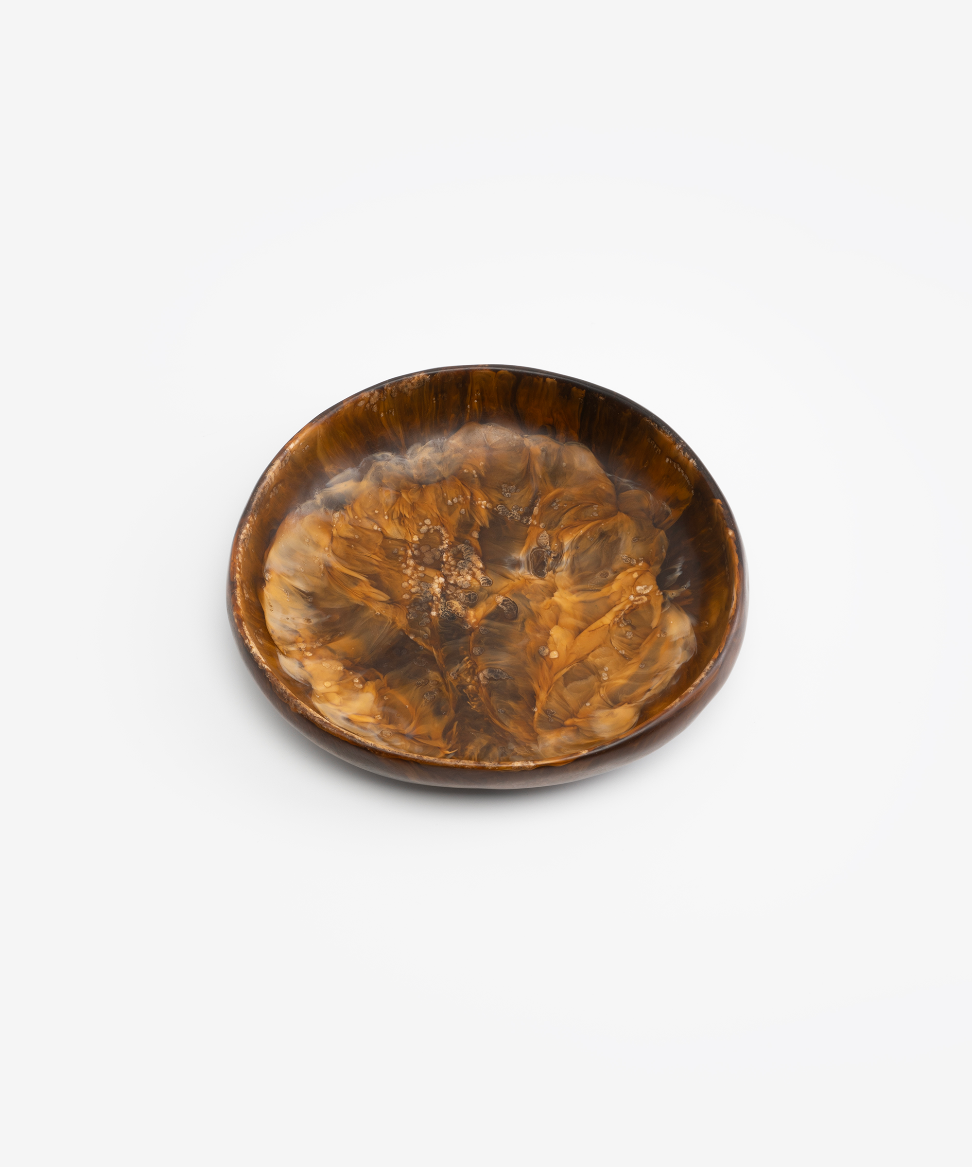 Our homewares are suitable for cold food only. These pieces should be hand washed in warm water. Resin may appear frosted after washing and should be rubbed with a drop of cooking oil to restore sheen. All resin pieces are strong and durable but should be treated like a ceramic and are not shock-absorbent and can break if dropped or knocked against a hard surface. Resin is not fire resistant and so should not be used in an oven, a microwave, or used as candleholders or ashtrays.