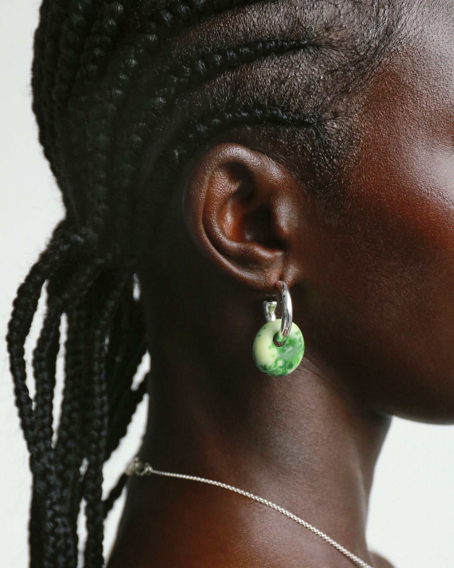 The Small Splash Hoop Earrings are a style with endless variation. Crafted from silver-plated brass and adorned with small, rounded resin beads, there are many possibilities for personalisation. This style allows the wearer to alternate colours of the smooth charms or simply remove for a classic hoop.
