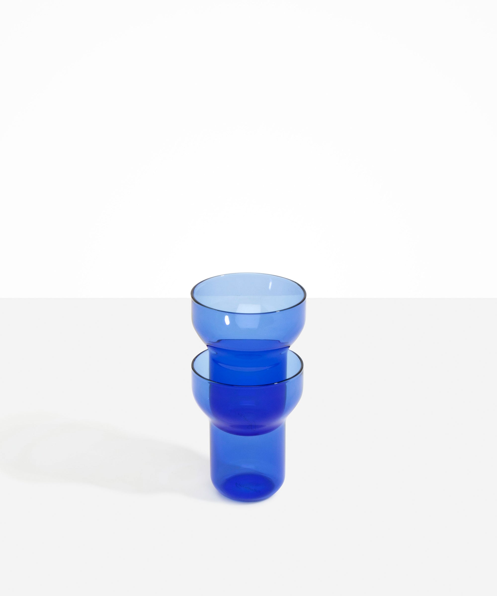 For his eponymous line, designer Stephen Ormandy carries his strong adherence to line and shape to a personal collection of chromatic glass. Each piece plays with positive and negative space, creating distinct forms for the table. The wine glasses are sold as a set of two.