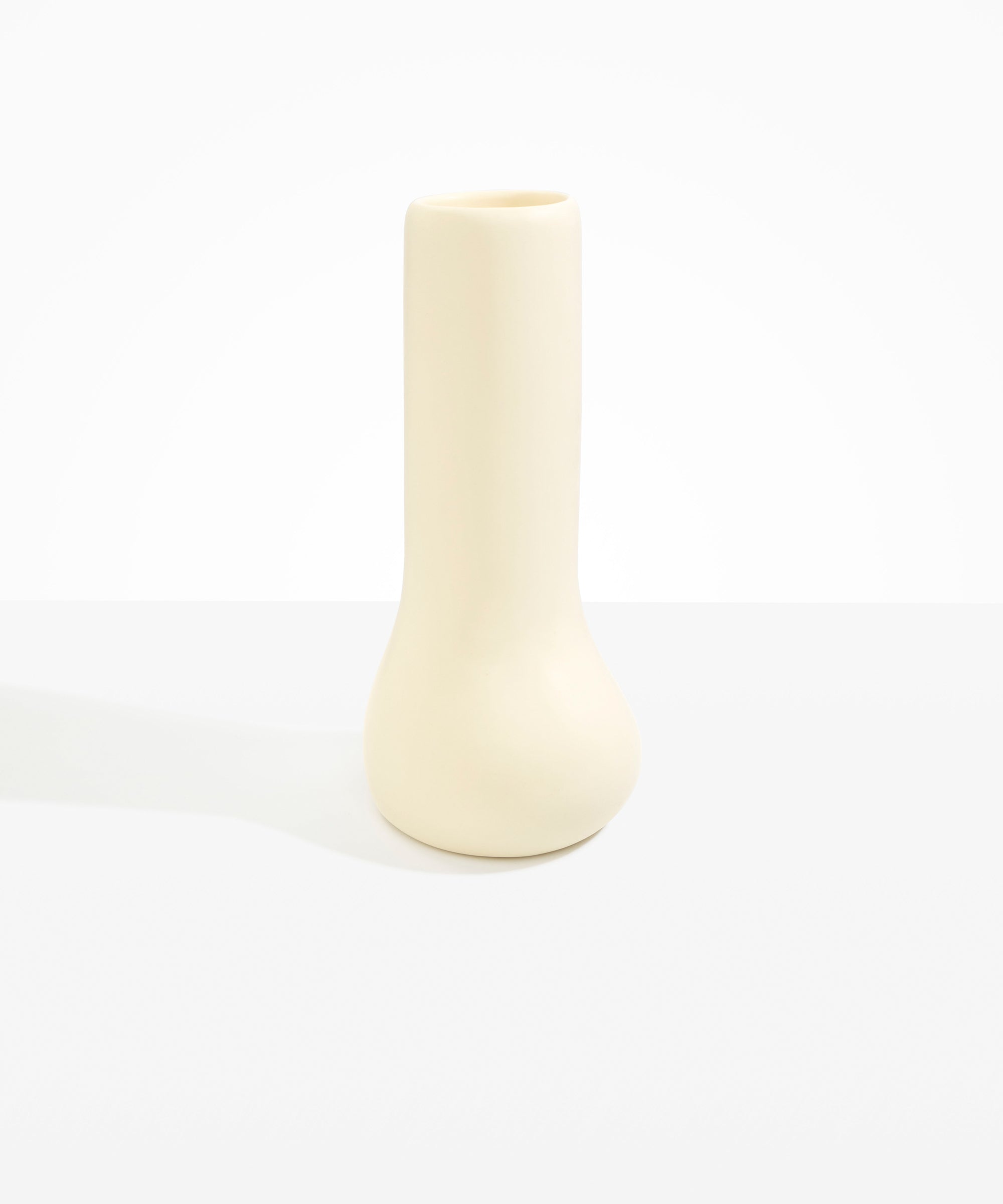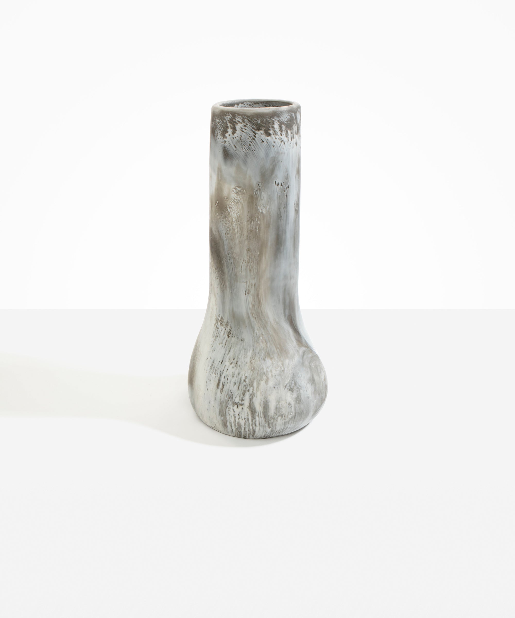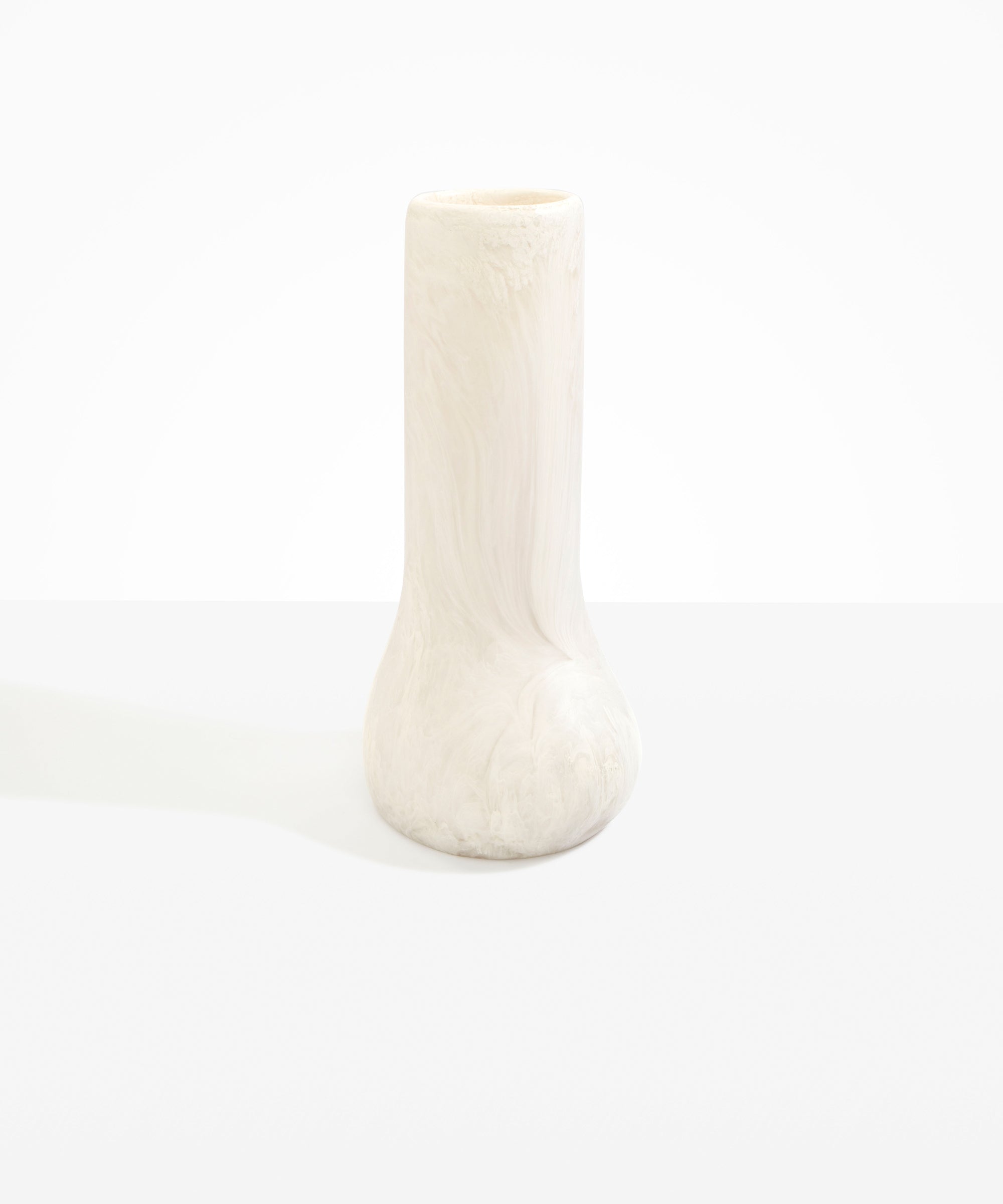 The Tall Stem Vase is a fluid shaped form, with an elongated neck and asymmetric flared base. The vessel, with its smooth, organic curved form, heroes its resin casting, allowing for dynamic movement and texture in its swirls to be revealed. The tall size in the series is an statement piece, suited to grand floral arrangements.