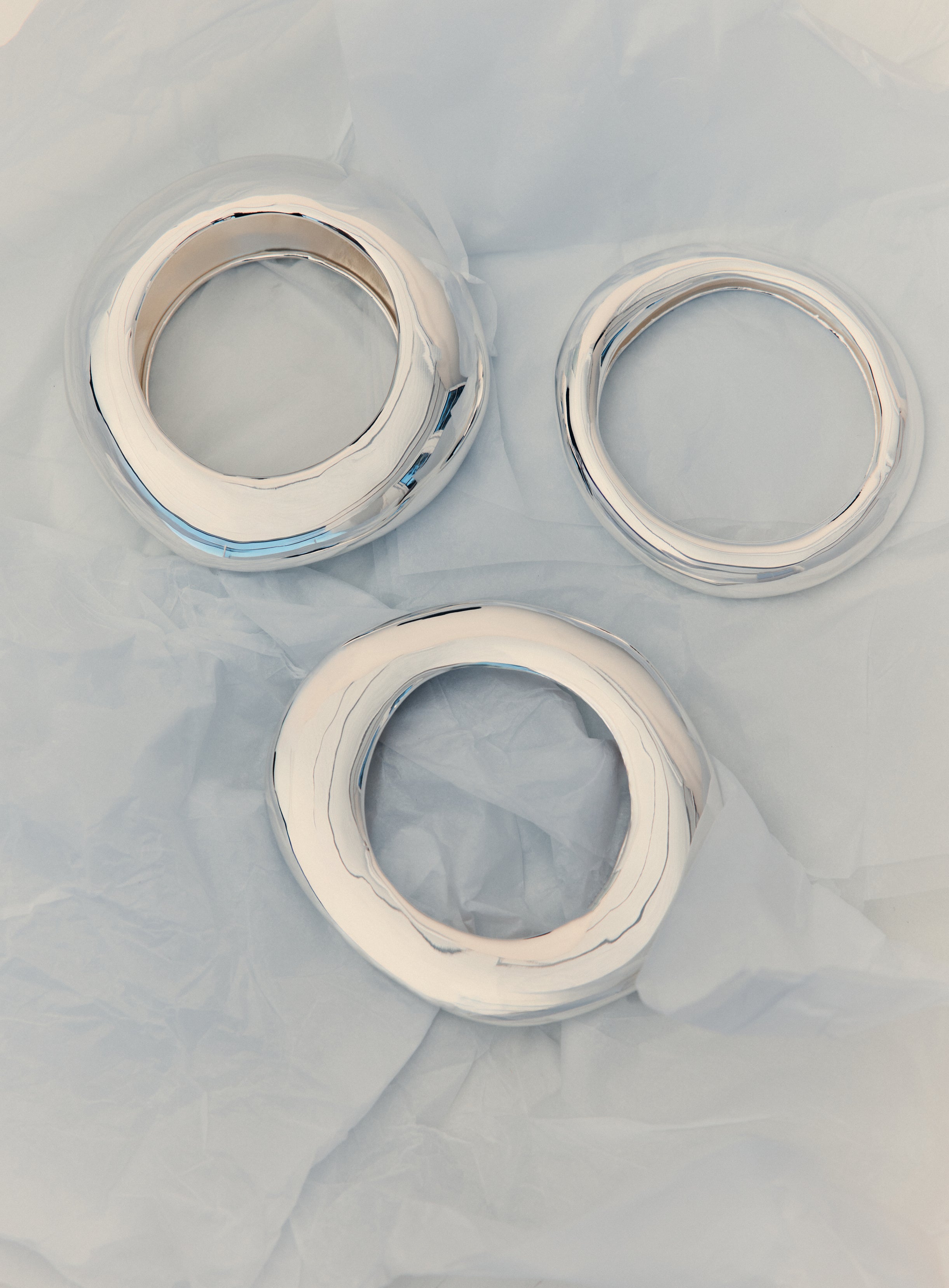 All metals will naturally show signs of wear, appearing as a result of daily life, developing markings and may patina with time. To maintain their form and surface, wear carefully, avoiding knocks and scratches to the piece and polish regularly. While some pieces may appear to have flexibility, all pieces should not be tampered with to prevent strain or breakage.