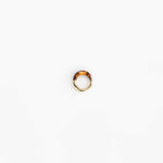 The Horn Ring showcases the endless possibilities of resin by encasing resin swirls in nano-coated brass. The small of this polished style has a thin, curved face, meeting elegantly with a brass band as it melds at its sides.
