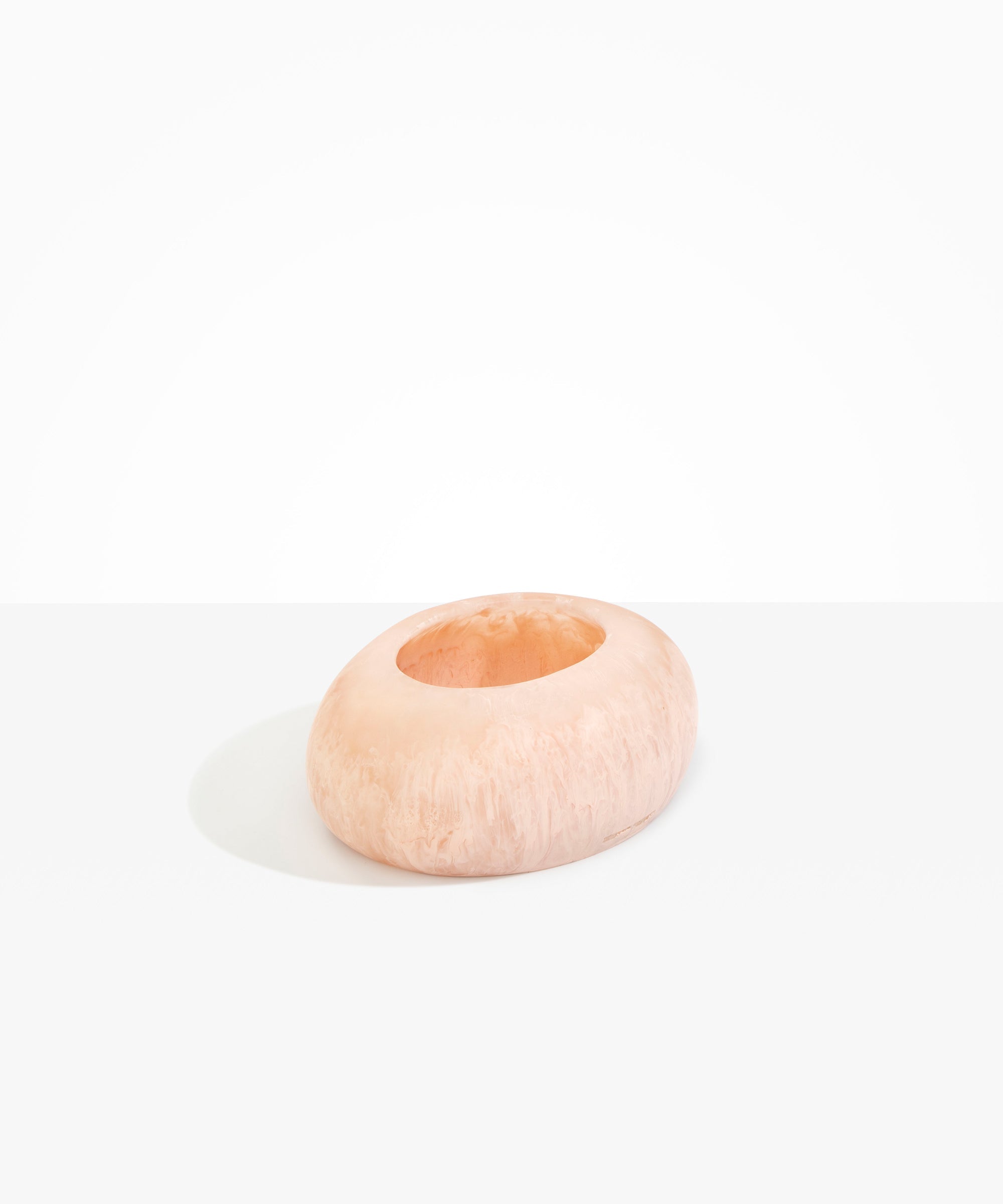 Drawing from the natural world, the Flat Rock Vase is a generous tabletop vase, with a continuous smooth surface. Formed in our signature resin, the low profile allows guests to converse without interruption, while holding abundant blooms. Pair with a flower frog or kenzan for more sculptural arrangements.