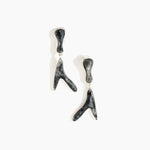 Referencing anatomical forms, the Long Wishbone Earrings feature two linked silver-fused resin beads, allowing for movement when worn. The resin beads are framed with silver detailing, drawing focus to the resin's distinctive, marbled surface.
