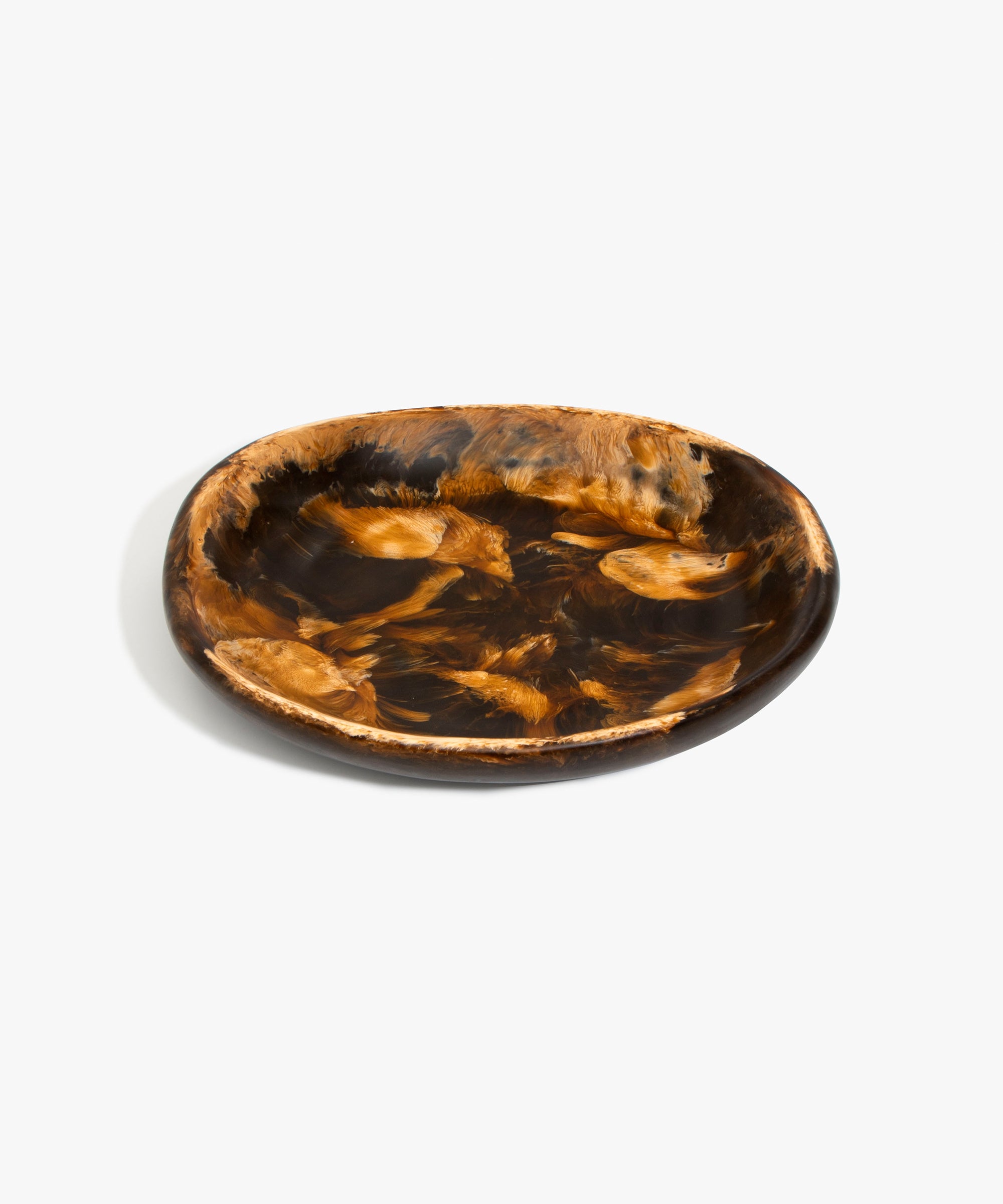 Our homewares are suitable for cold food only. These pieces should be hand washed in warm water. Resin may appear frosted after washing and should be rubbed with a drop of cooking oil to restore sheen. All resin pieces are strong and durable but should be treated like a ceramic and are not shock-absorbent and can break if dropped or knocked against a hard surface. Resin is not fire resistant and so should not be used in an oven, a microwave, or used as candleholders or ashtrays.